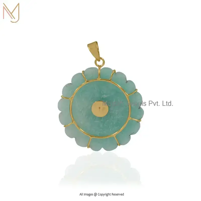 14K Yellow Gold Amazonite & Multi Gemstone Flower Pendant Custom Jewelry
