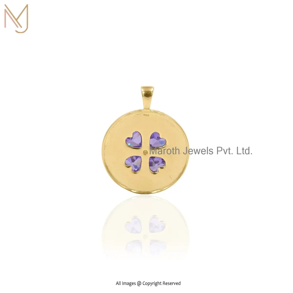 14K Yellow Gold Amethyst Leaf Clover Disc Pendant Custom Jewelry
