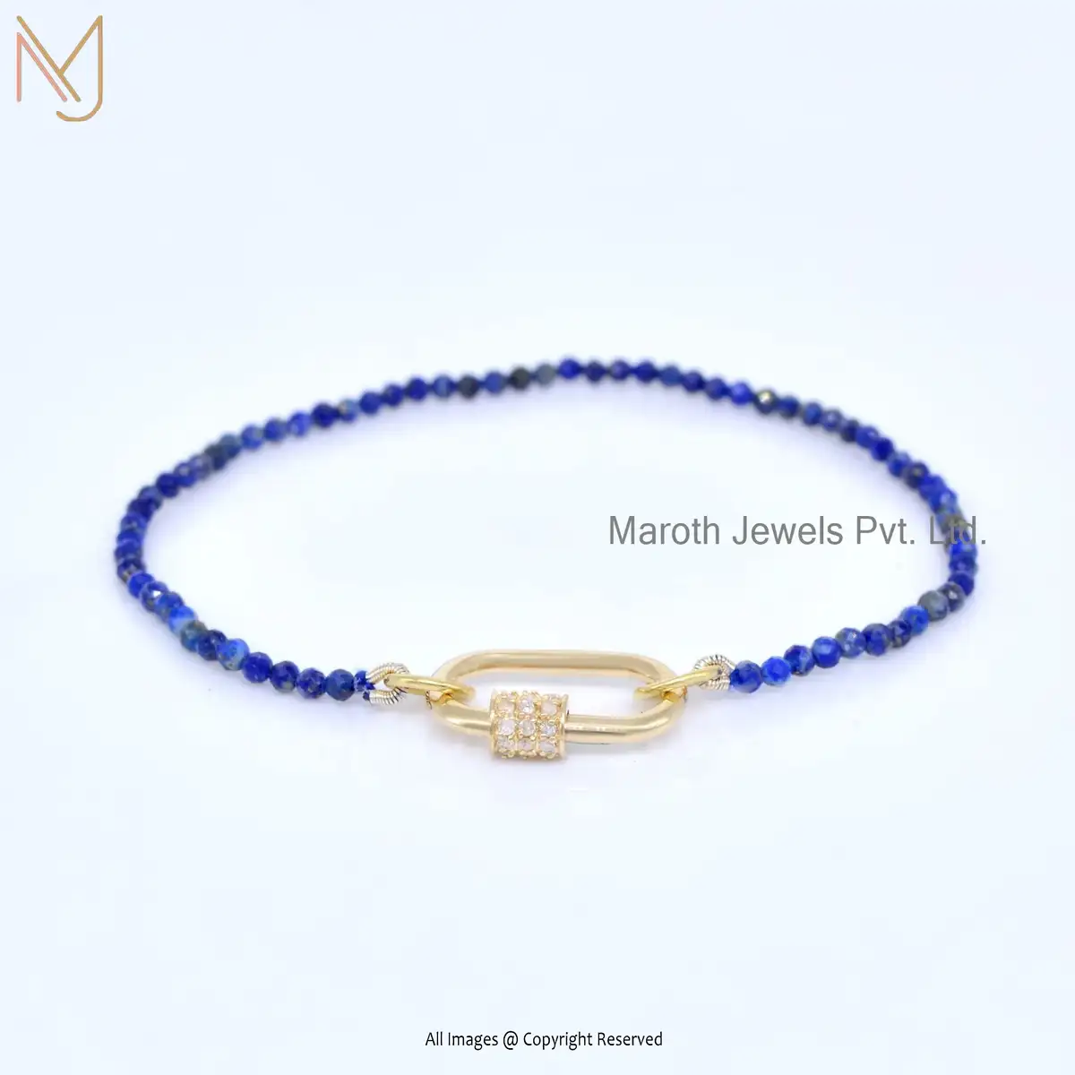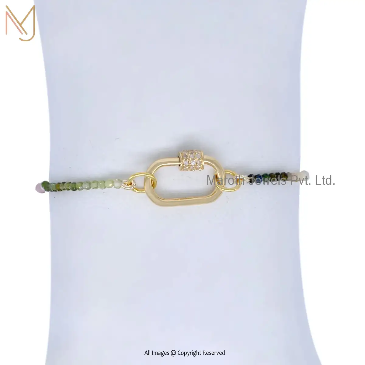 14K Yellow Gold Beads Gemstone Carabiner Bracelet Jewelry Supplier