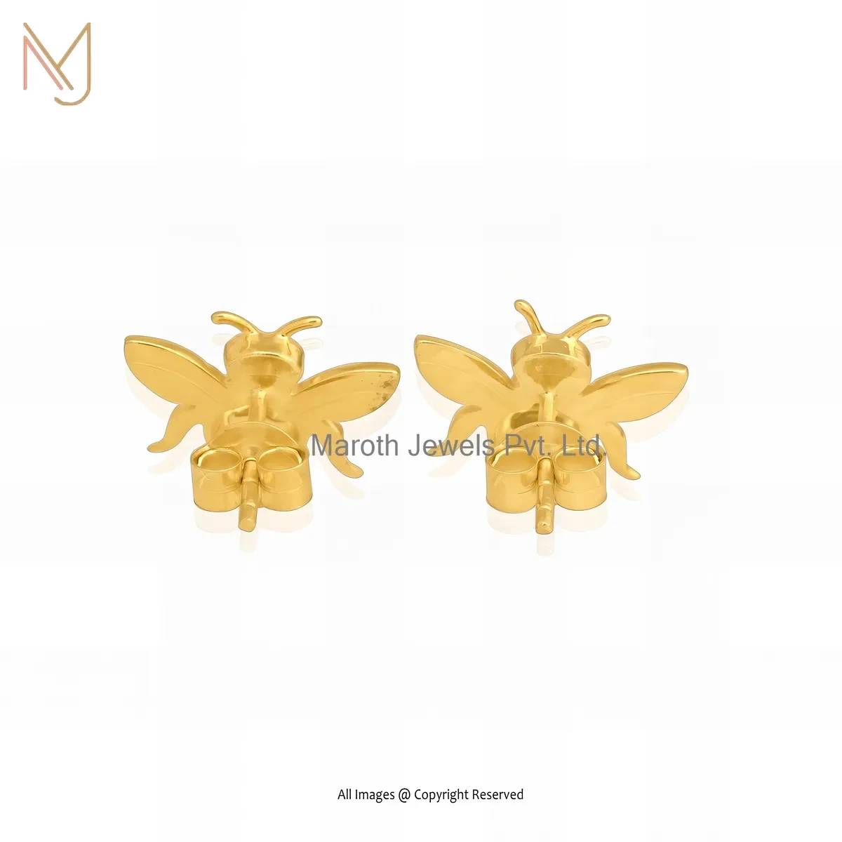 14K Yellow Gold Bee Stud Earrings Manufacturer