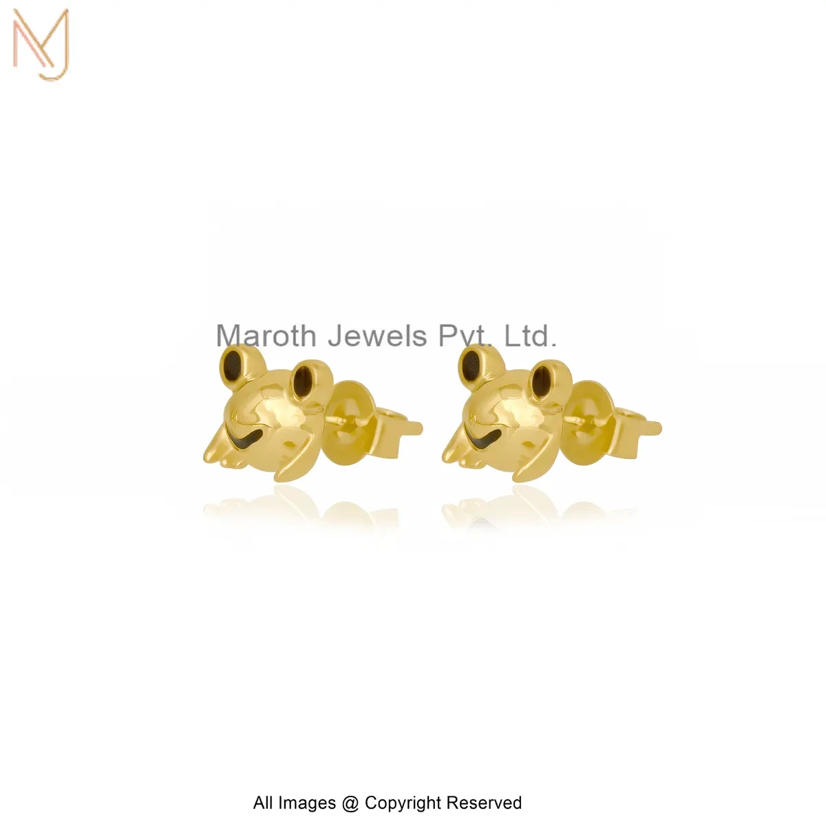 14K Yellow Gold Black Enamel Cute Frog Face Gold Stud Earrings Jewelry Supplier