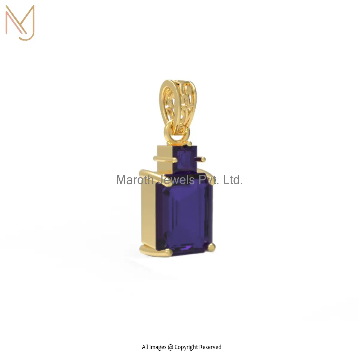 14K Yellow Gold Blue Sapphire Pendant Jewelry Manufacturer