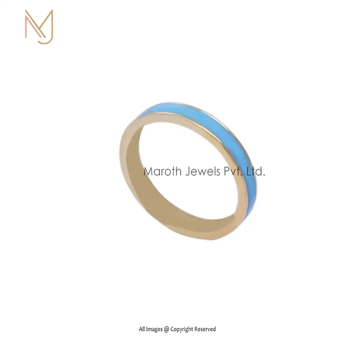 14K Yellow Gold Bright Blue Enamel Bands Ring Manufacturer