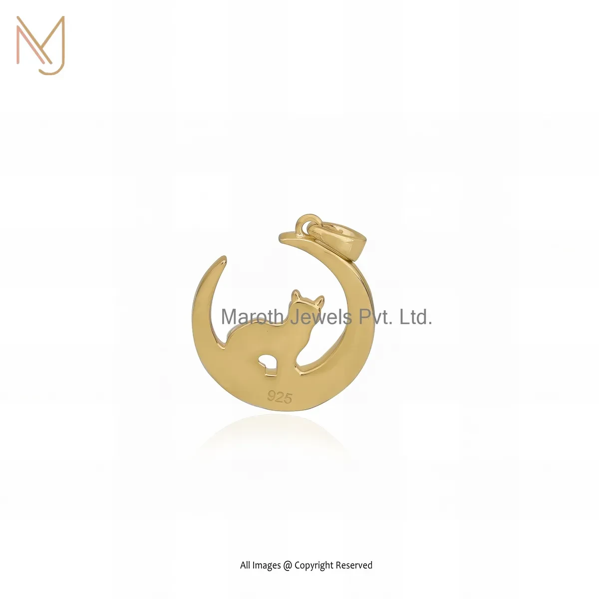 14K Yellow Gold Cat-Moon Charm Pendant Jewelry Supplier