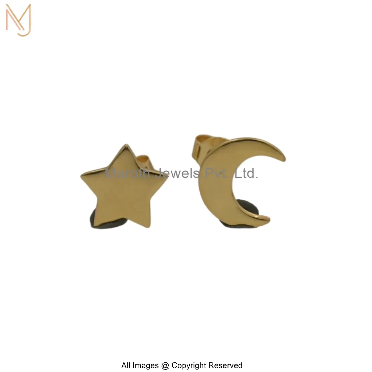 14K Yellow Gold Celestial Star & Moon Stud Earrings Manufacturer