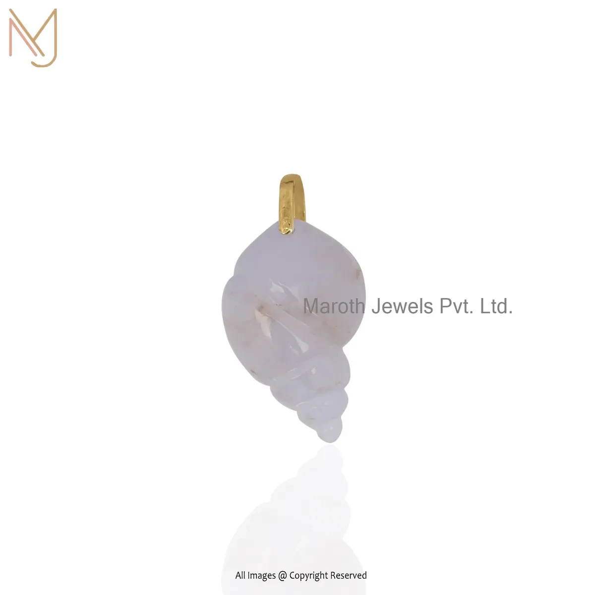 14K Yellow Gold Chalcedony Opal Gemstone Pendant Custom Jewelry
