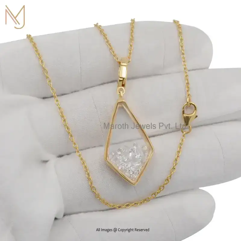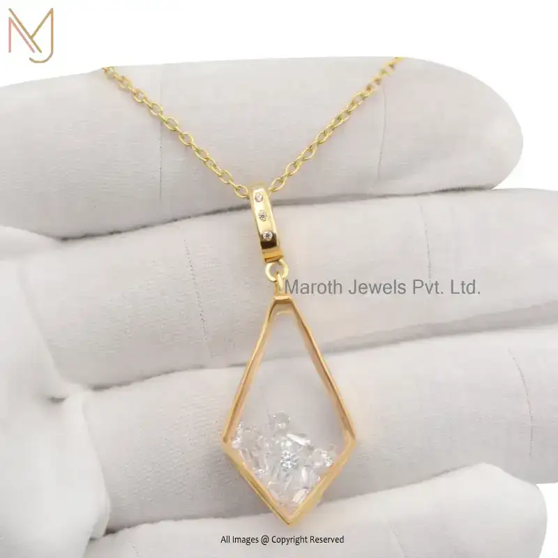 14K Yellow Gold Crystal Quartz Gemstone Diamond Shaker Pendant Manufacturer