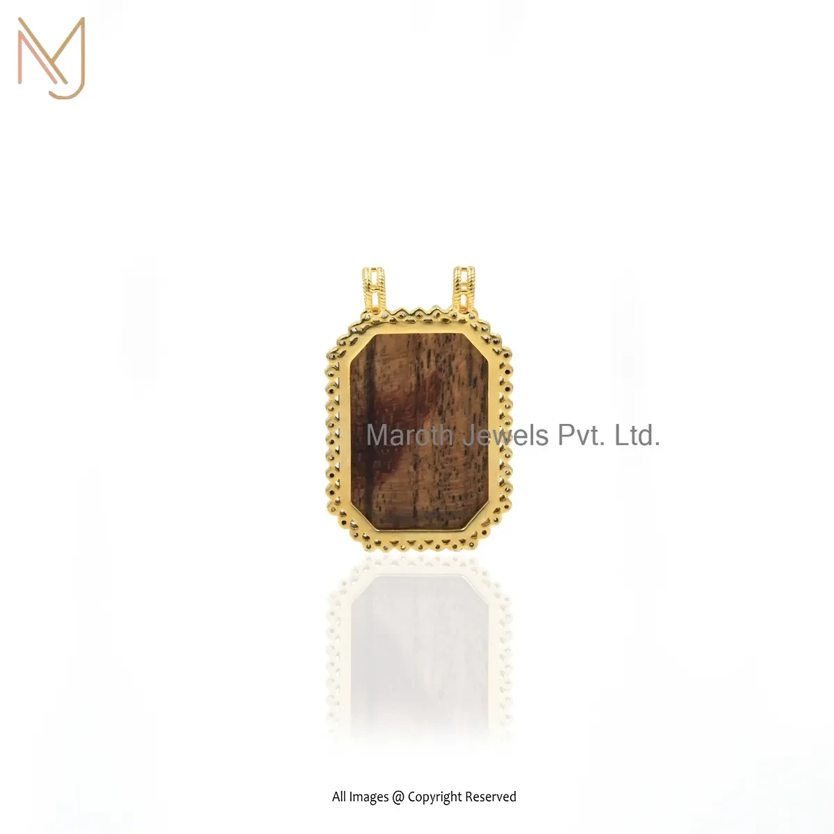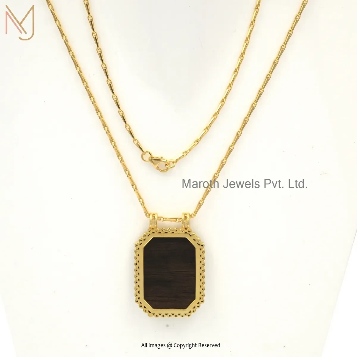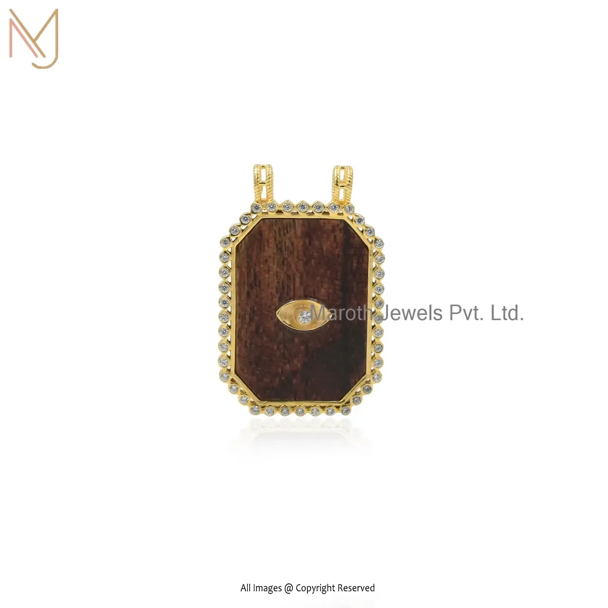14K Yellow Gold Cubic Zircon And Enamel & Wooden Evil Eye Gemstone Pendant Jewelry Supplier