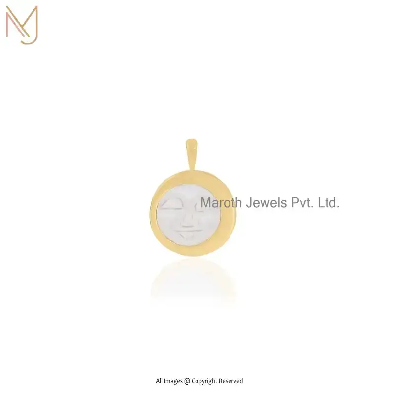 14K Yellow Gold Cubic Zircon & Clear Quartz Moon Face Pendant Jewelry Supplier