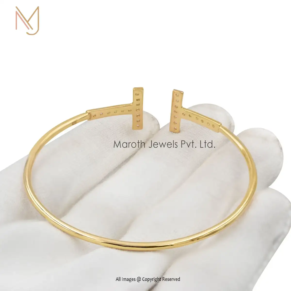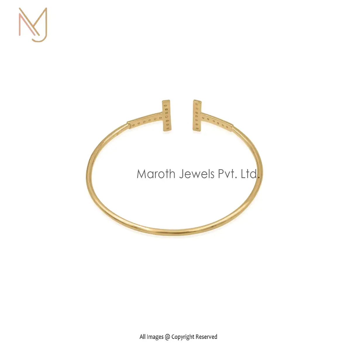 14K Yellow Gold Cubic Zircon Diamond T Cuff Bangle Custom Jewelry