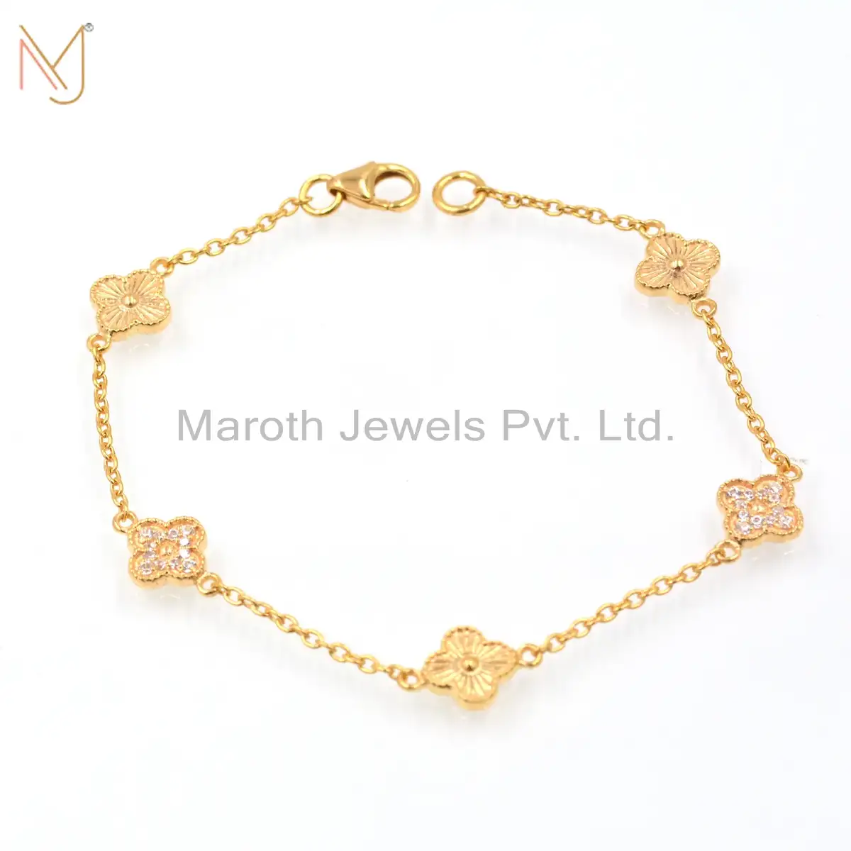 14K Yellow Gold Cubic Zircon Flower Bracelet Jewelry Supplier