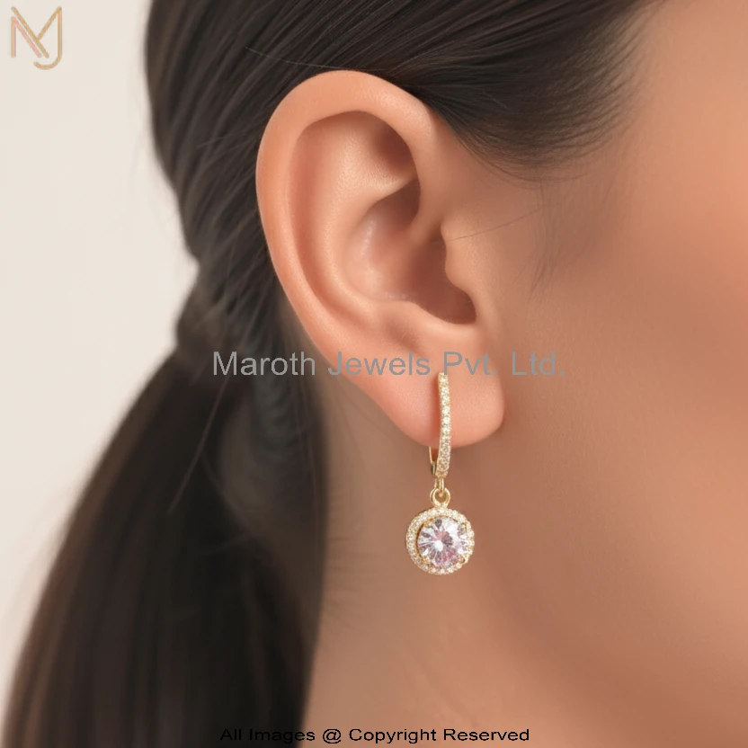 14K Yellow Gold Cubic Zircon Geometric Moissanite Huggie Drop Earrings Manufacturer