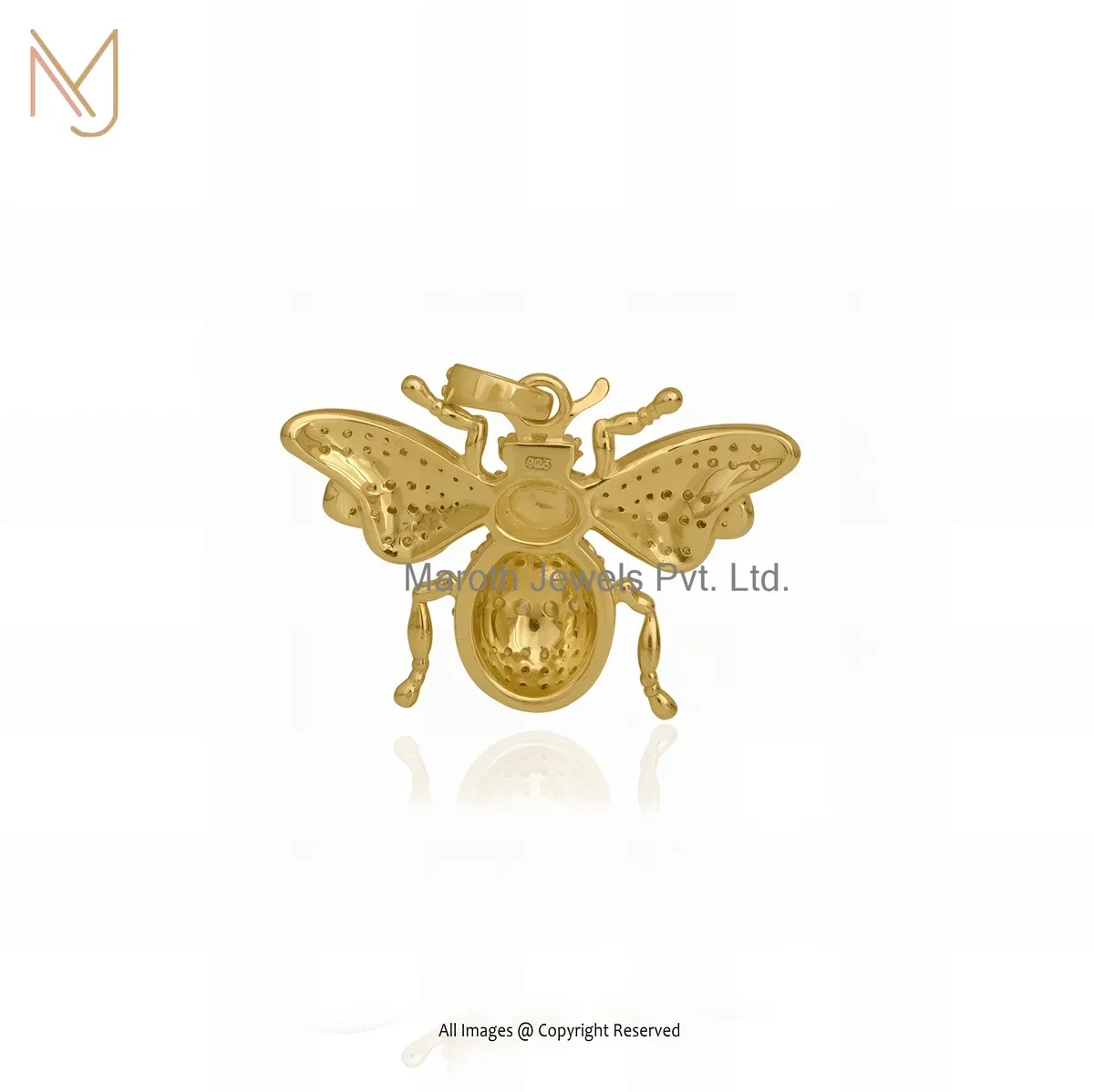 14K Yellow Gold Cubic Zircon Honey Bee Pendant Custom Jewelry