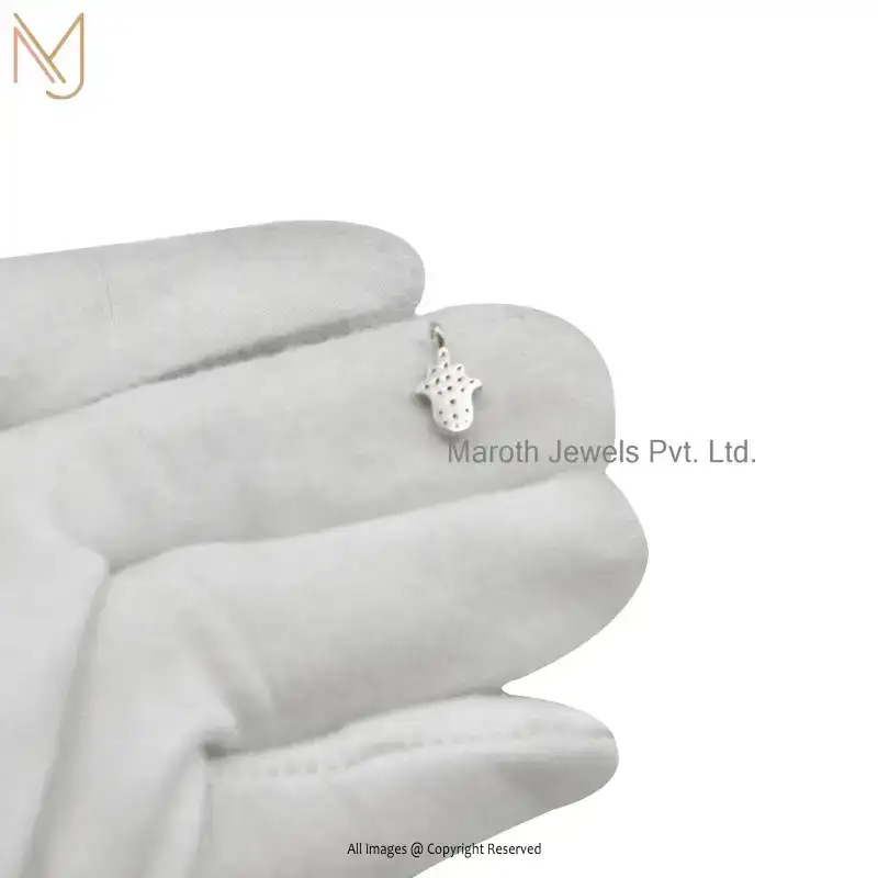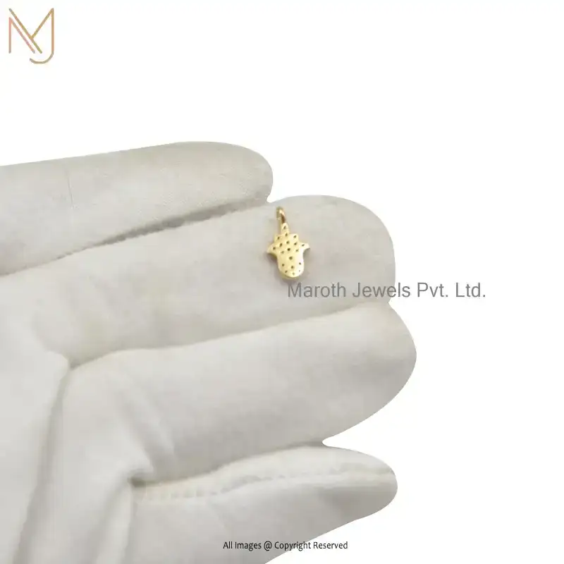 14K Yellow Gold Cubic Zircon Humsa Charm Pendant Jewelry Supplier