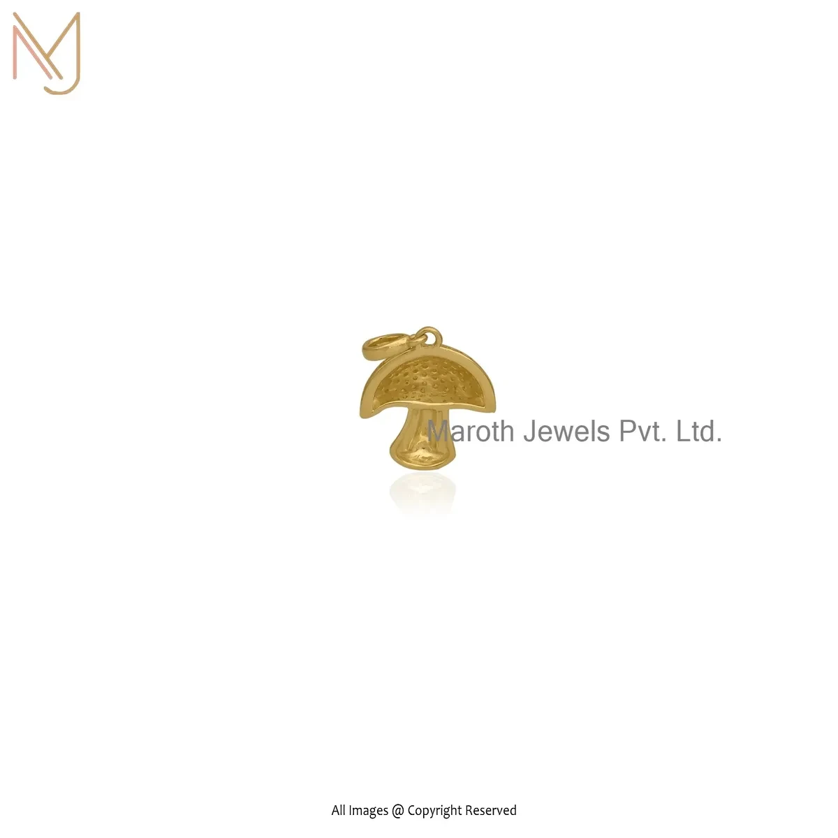 14K Yellow Gold Cubic Zircon Mushroom Pendant Custom Jewelry