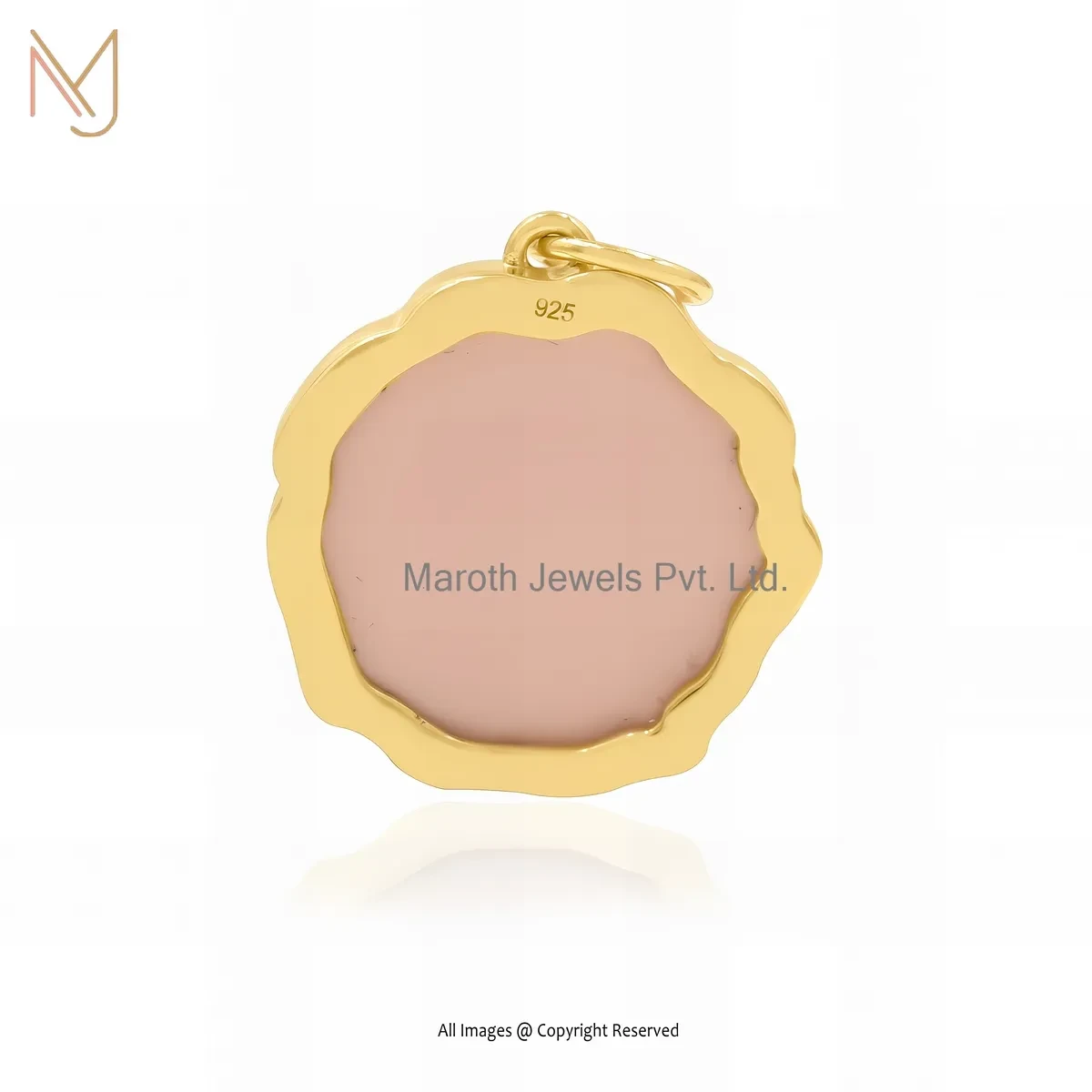 14K Yellow Gold Cubic Zircon & Pink Opal Gemstone Flower Pendant Manufacturer