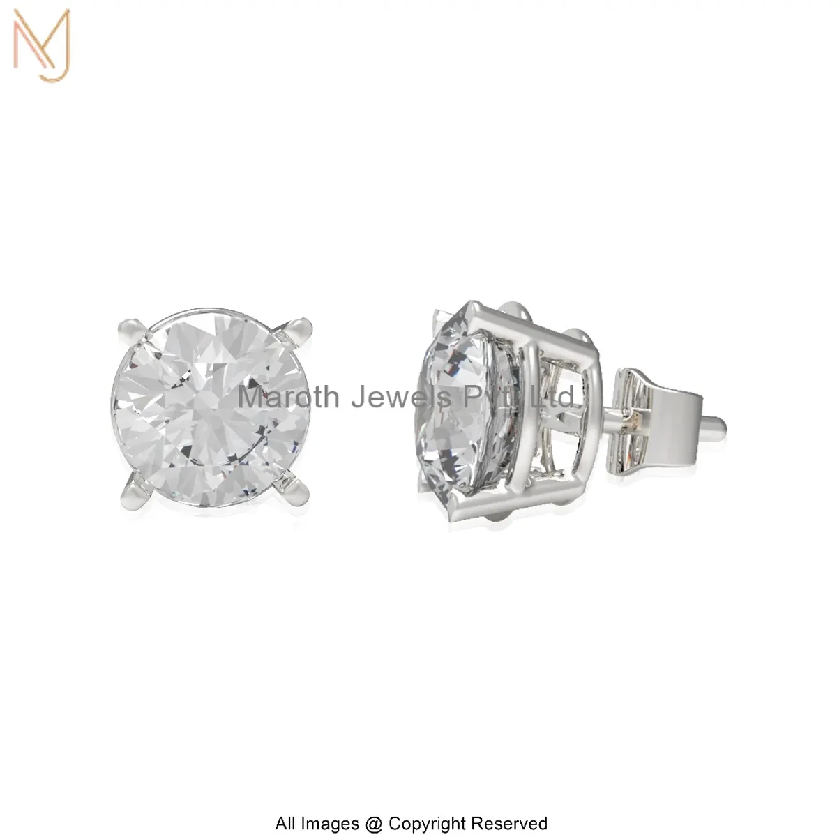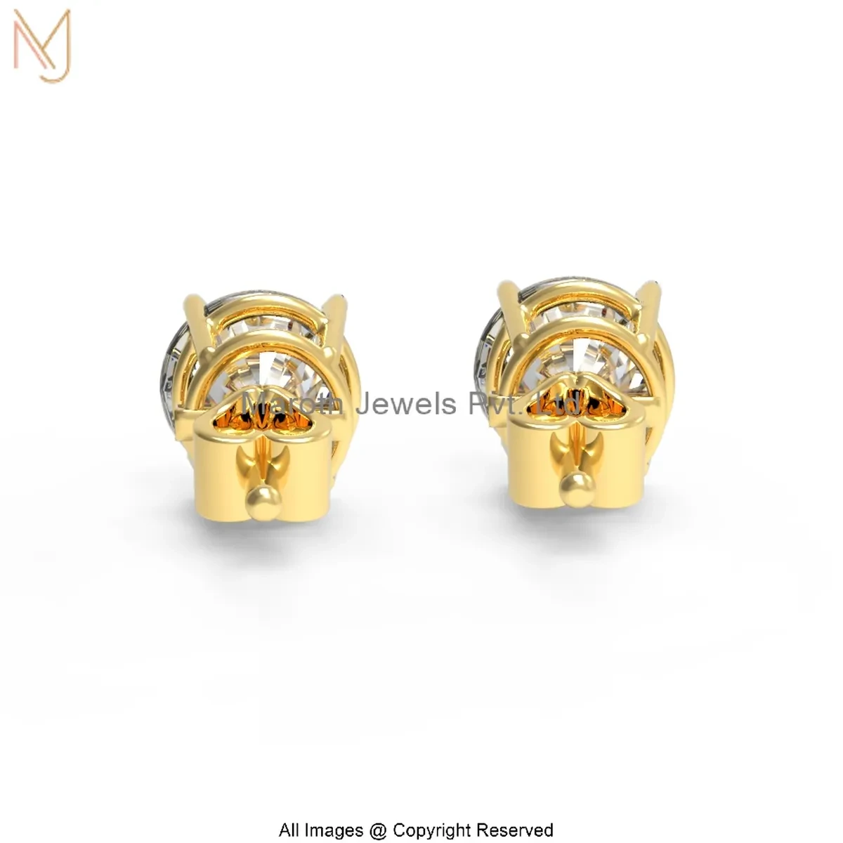 14K Yellow Gold Cubic Zircon Round Brilliant Diamond Stud Earring Custom Jewelry