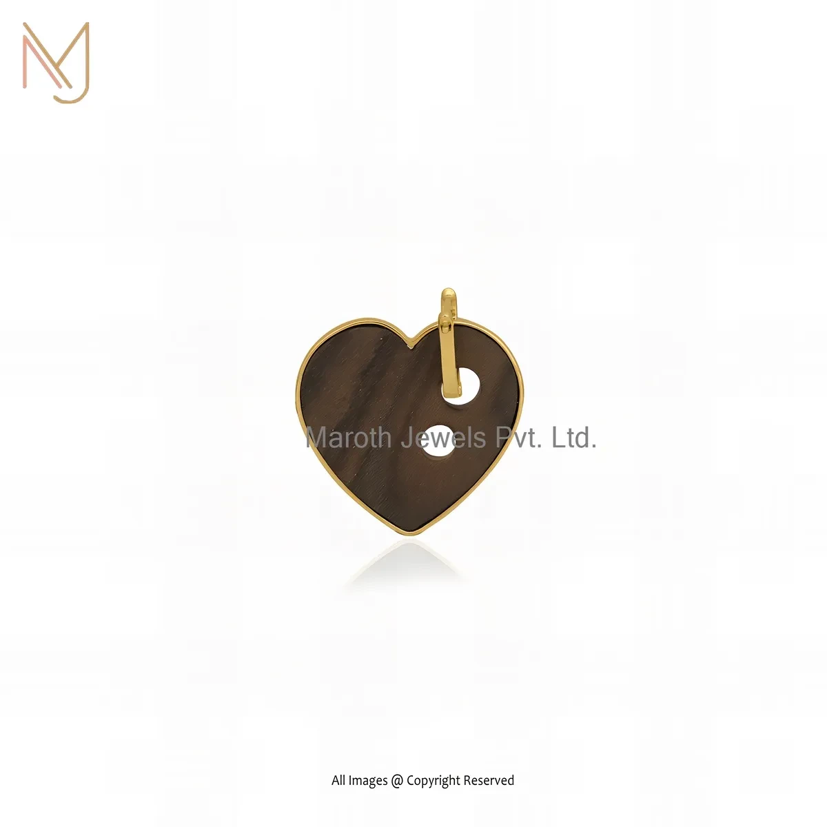 14K Yellow Gold Cubic Zircon Wooden Heart Pendant Manufacturer