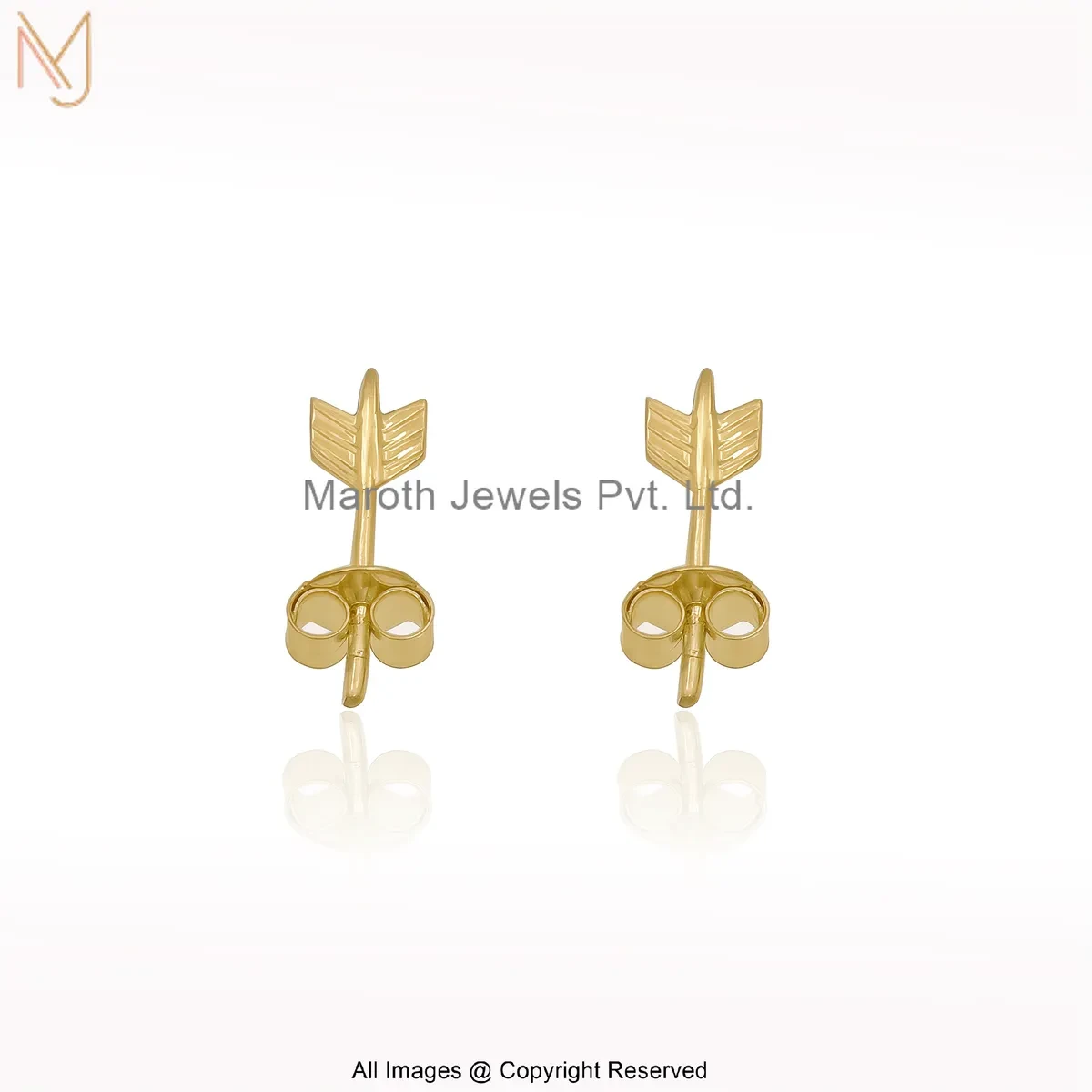 14K Yellow Gold Cupids Arrow Studs Earrings Custom Jewelry