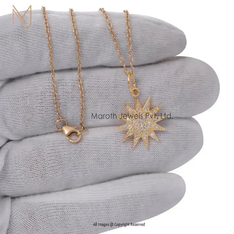 14K Yellow Gold CZ Star Charm Pendant Jewelry Supplier