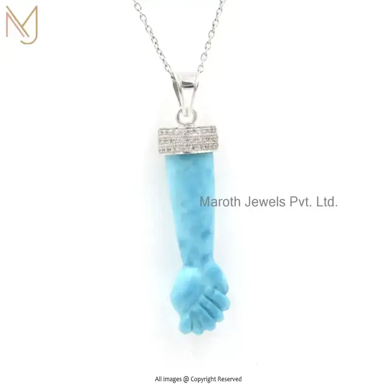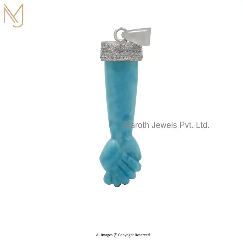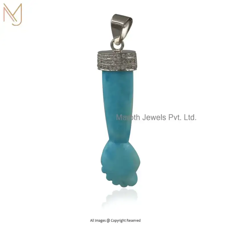14K Yellow Gold Diamond Cubic Zircon & Turquoise Gemstone Figa Charm Pendant USA