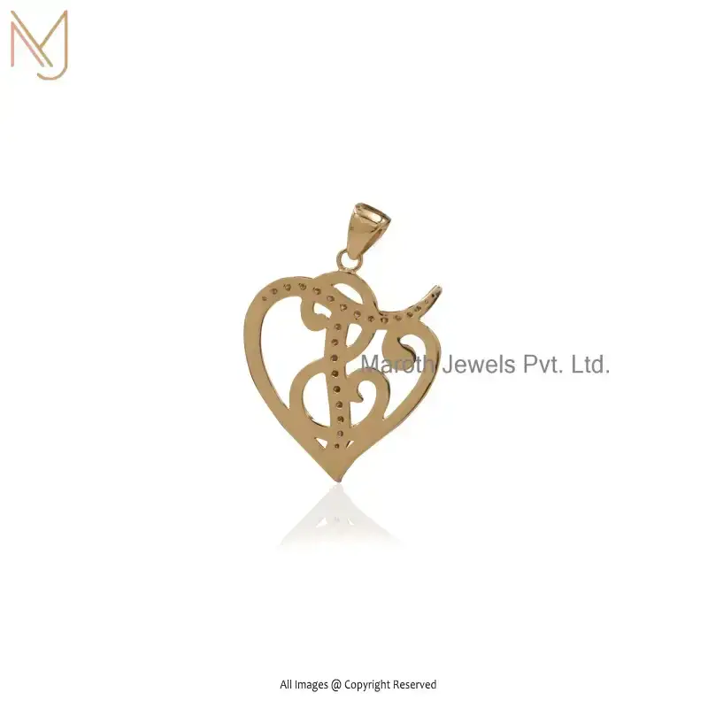 14K Yellow Gold Diamond Heart Shape Pendant Jewelry Supplier