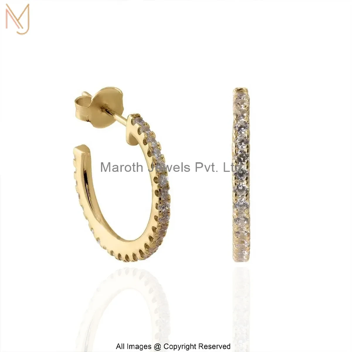 14K Yellow Gold Diamond Huggies Hoop Earring Manufacturer