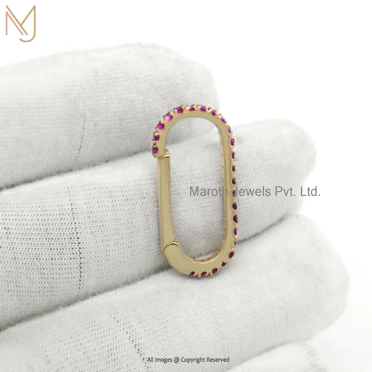 14K Yellow Gold Diamond Ruby Oval Link Enhancer Clasp Lock Jewelry Supplier