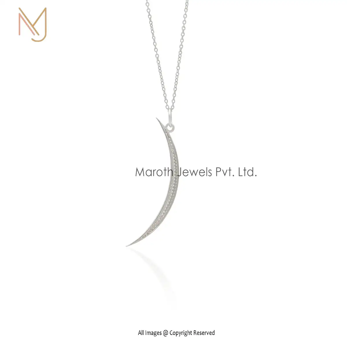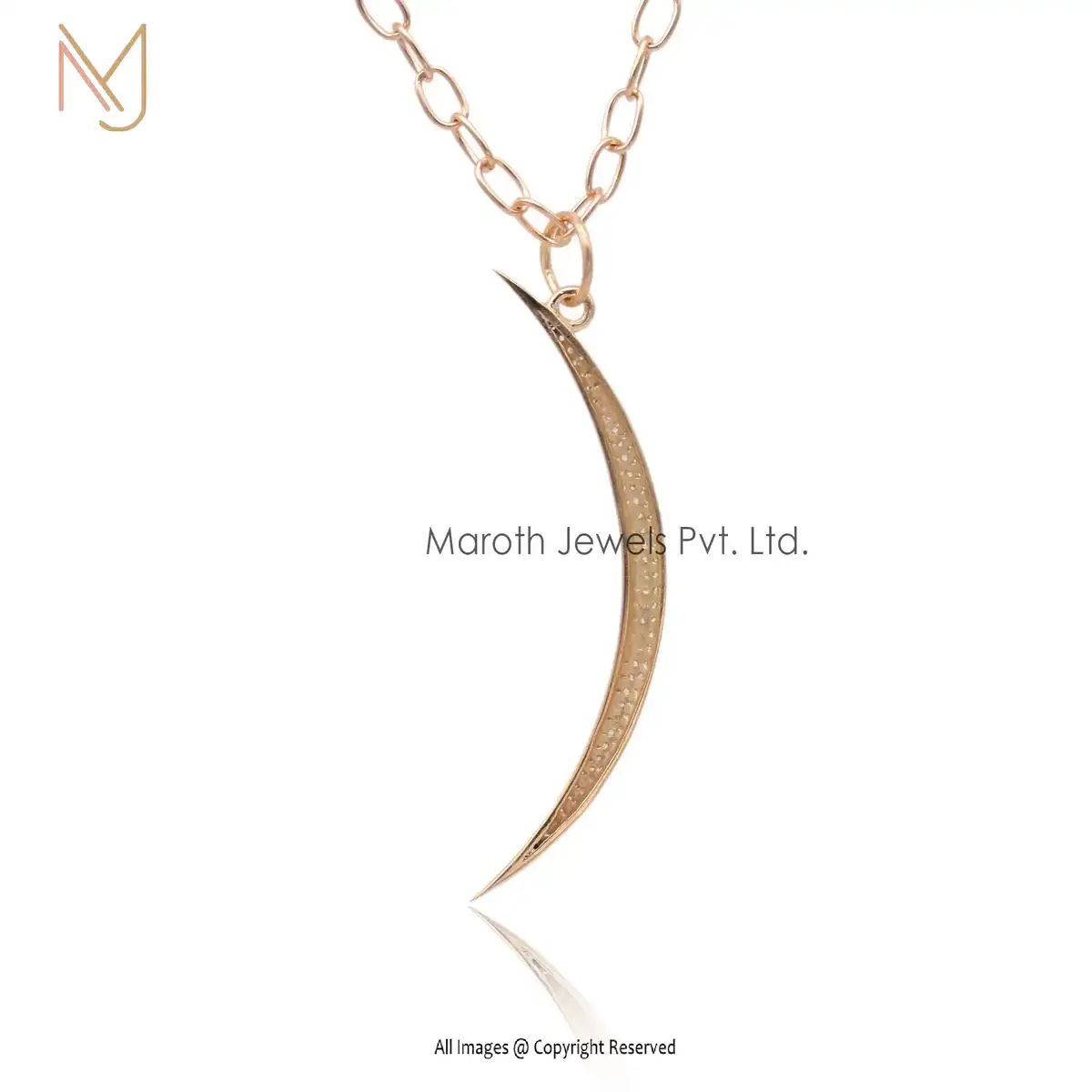 14K Yellow Gold Diamond White CZ Half Moon Pendant Jewelry Supplier