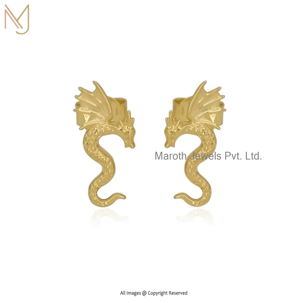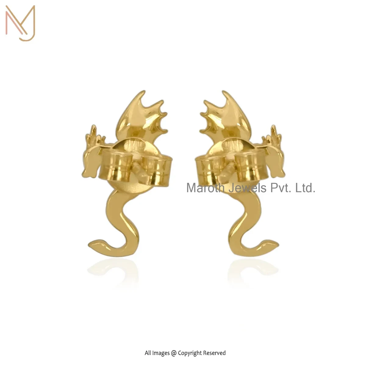 14K Yellow Gold Dragon Stud Earring Custom Jewelry