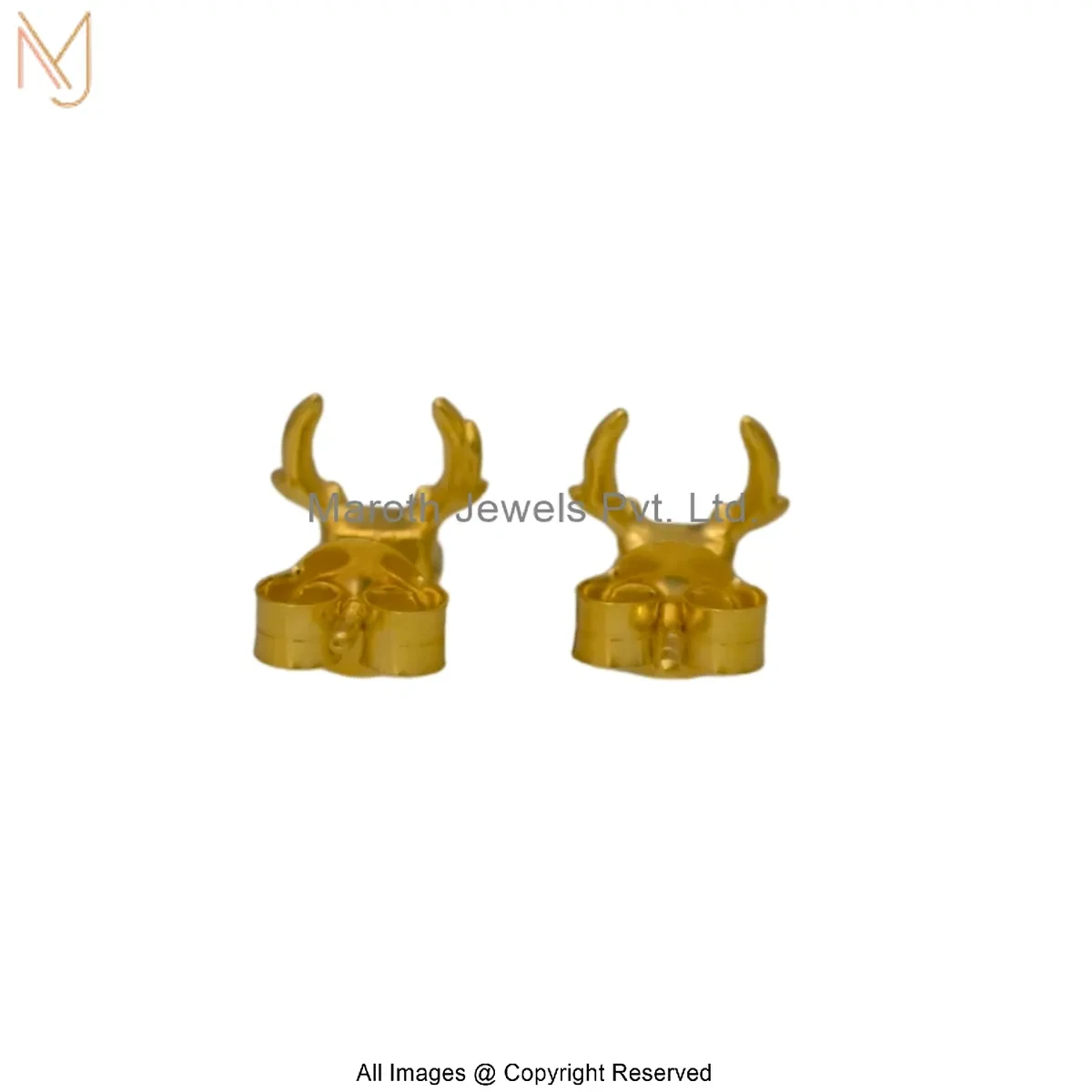 14K Yellow Gold Elegant Stag Head Gold Stud Earring Jewelry Supplier