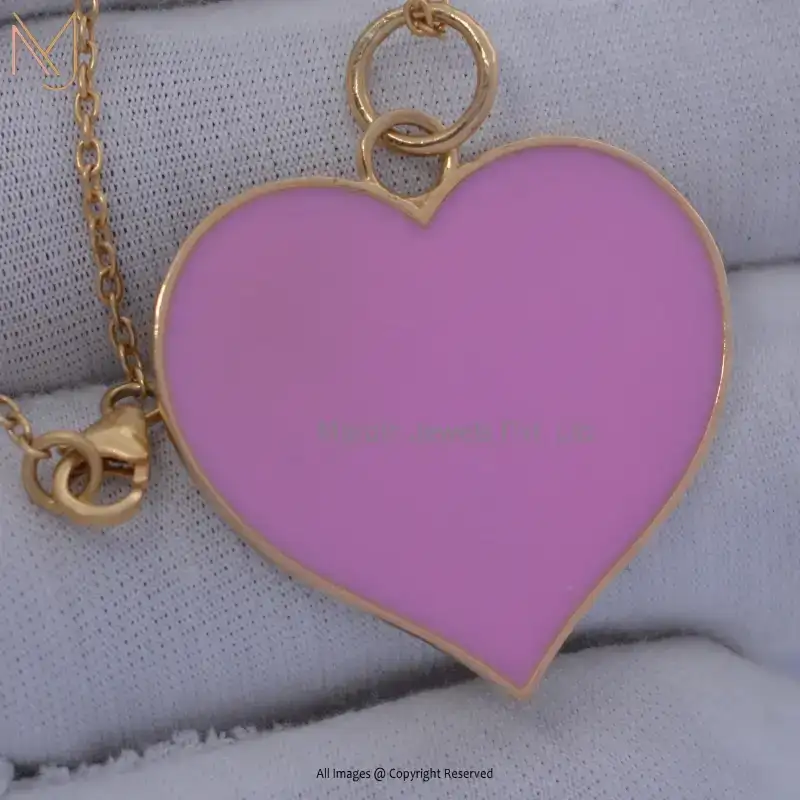 14K Yellow Gold Enamel Blue Heart Pendant Manufacturer