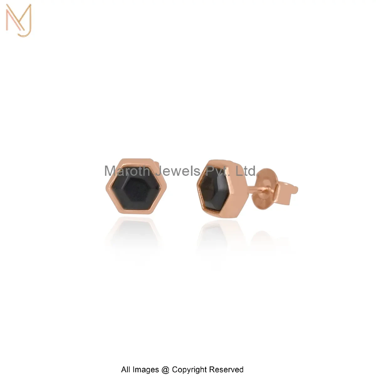 14K Yellow Gold Gemstone Mint Green Hex Stud Earrings Manufacturer