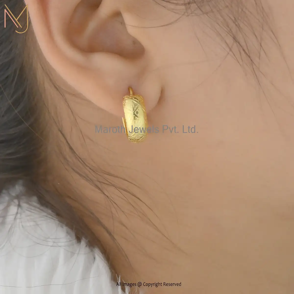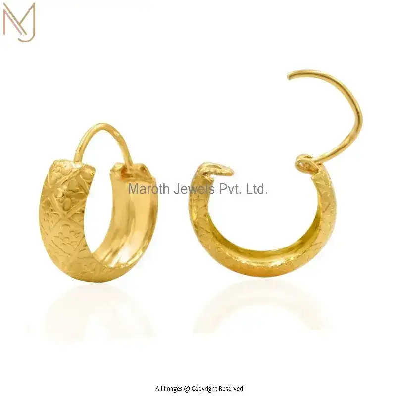 14K Yellow Gold Hoop Earring With Carving Jewelry Manufacturer