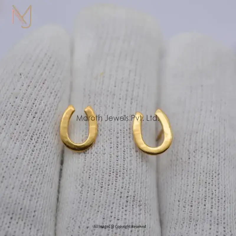 14K Yellow Gold Horseshoe Studs Earrings Jewelry Manufacturer