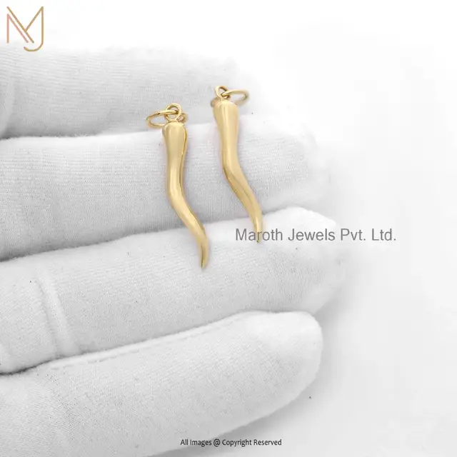 14K Yellow Gold Italian Horn Design Pendant Jewelry Supplier
