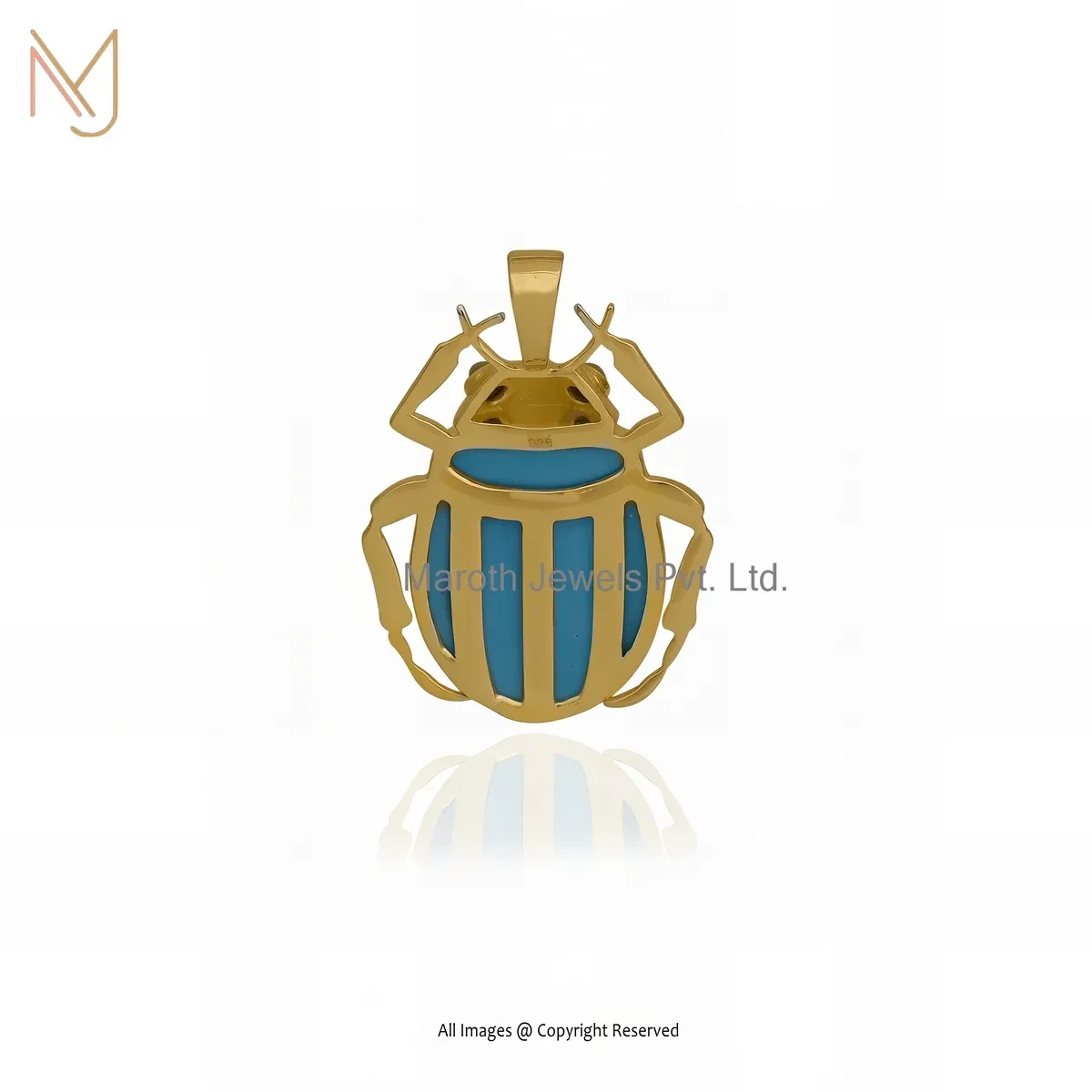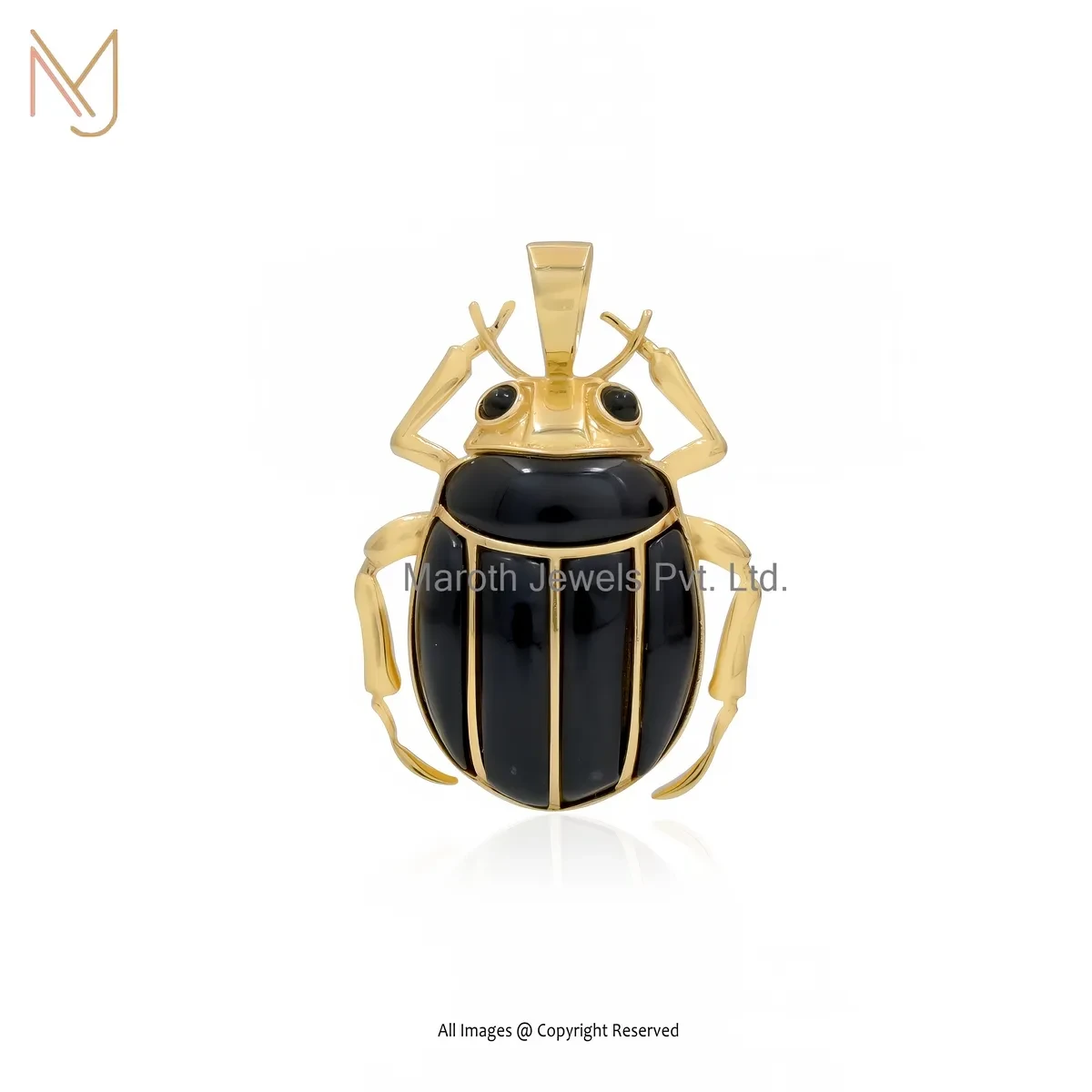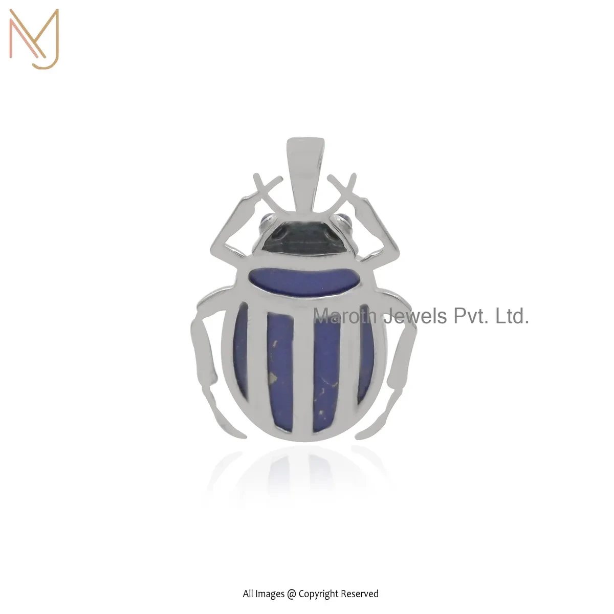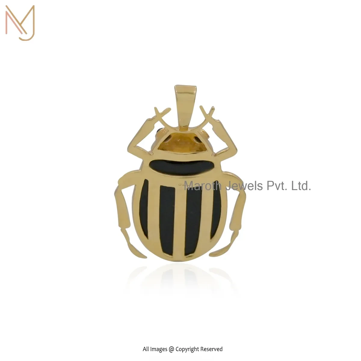 14K Yellow Gold Lapiz Lazuli Carved Scarab Pendant Custom Jewelry