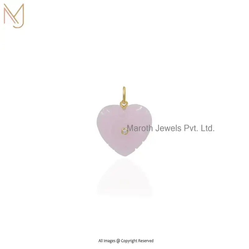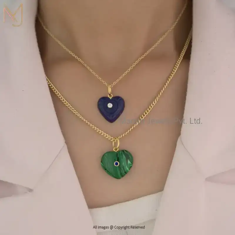 14K Yellow Gold Lapiz Lazuli & Cubic Zircon Heart Gemstone Pendant Manufacturer