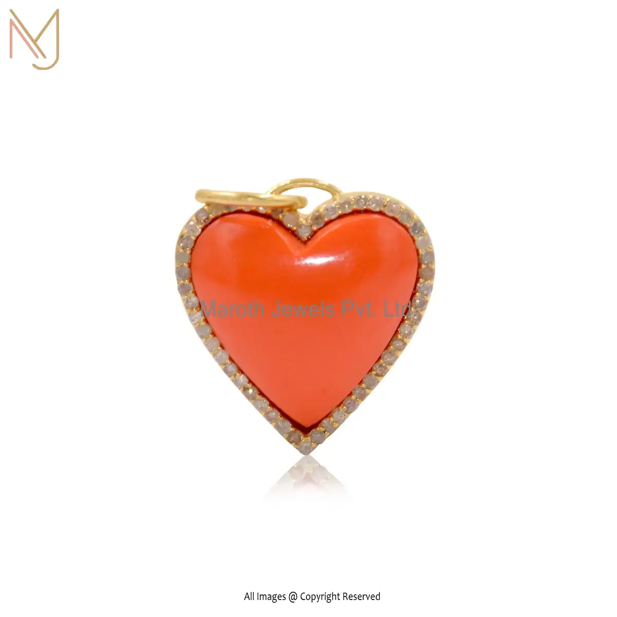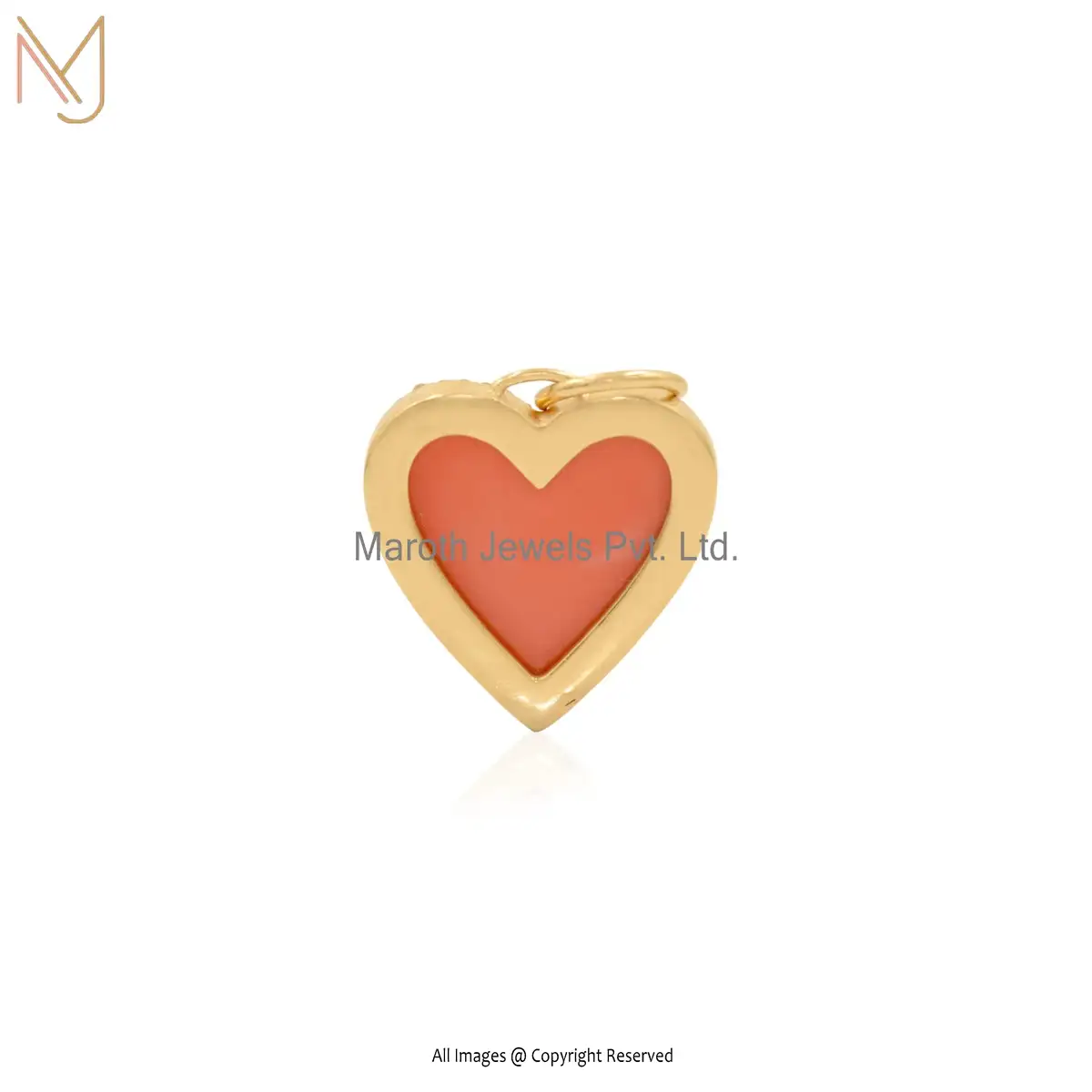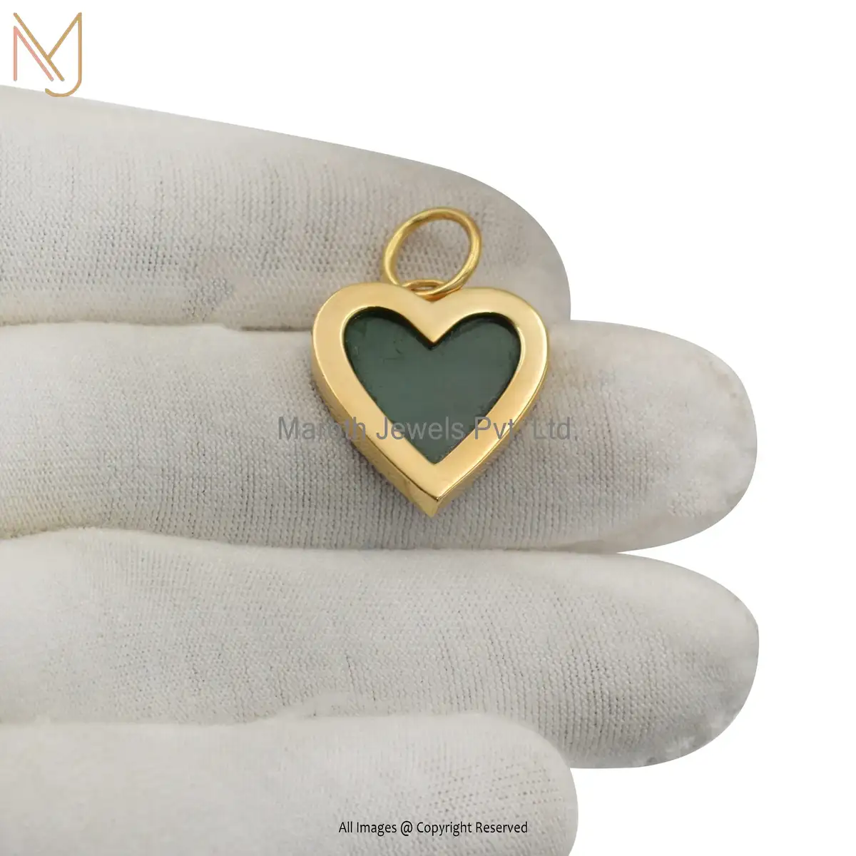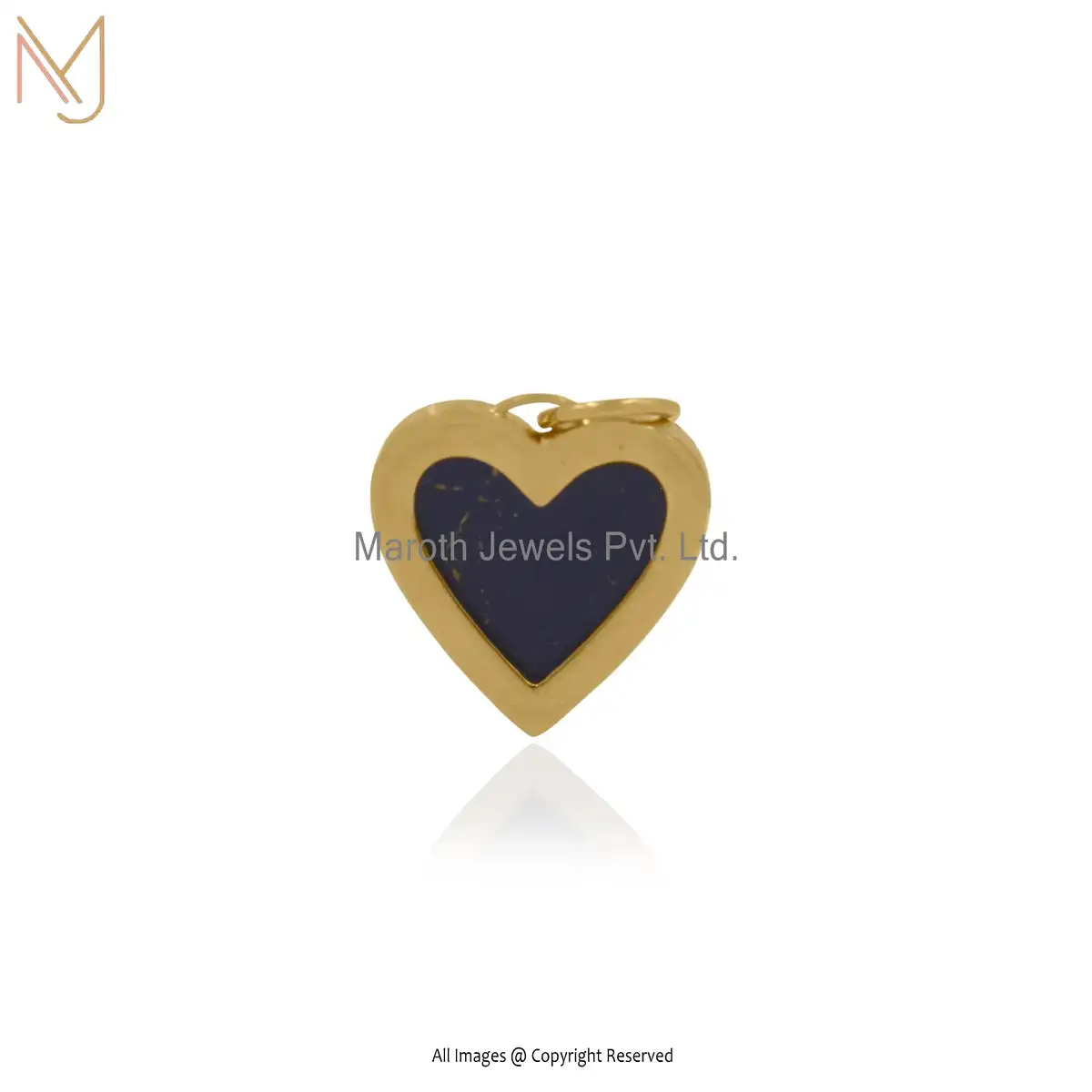 14K Yellow Gold Lapiz Lazuli Diamond And Heart Pendant Jewelry USA