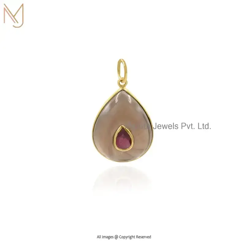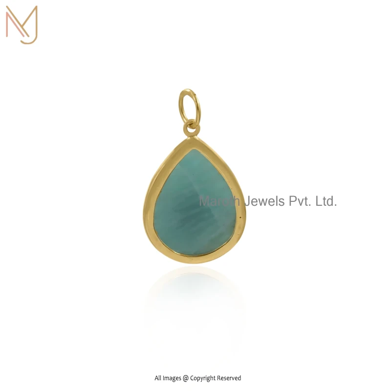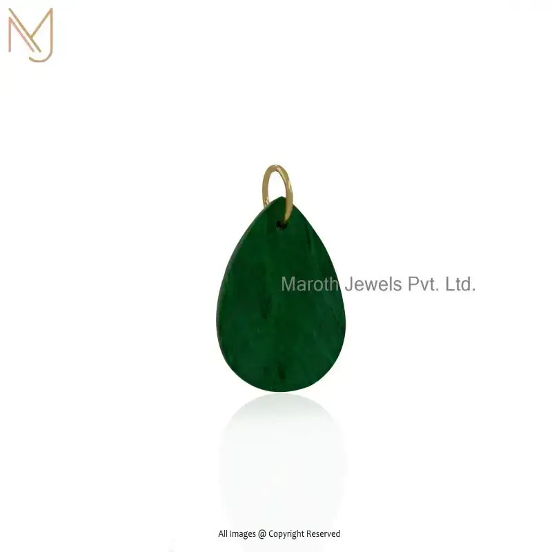 14K Yellow Gold Moonstone And Green Cubic Zircon Teardrop Pendant USA