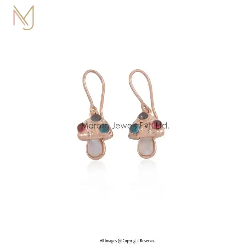 14K Yellow Gold Moonstone Multi Gemstone Mushroom Dangle Earrings Jewelry Supplier