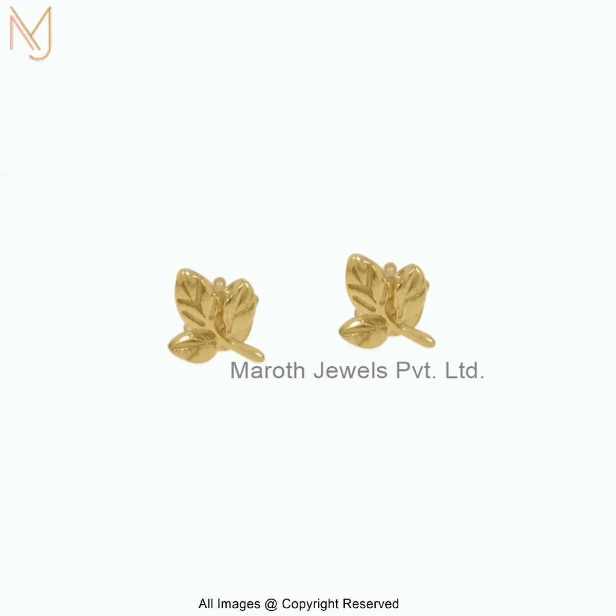 14K Yellow Gold Olive Leaf Studs Earrings Jewelry Supplier