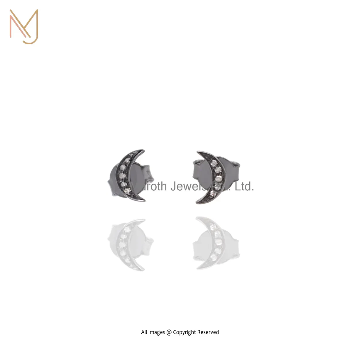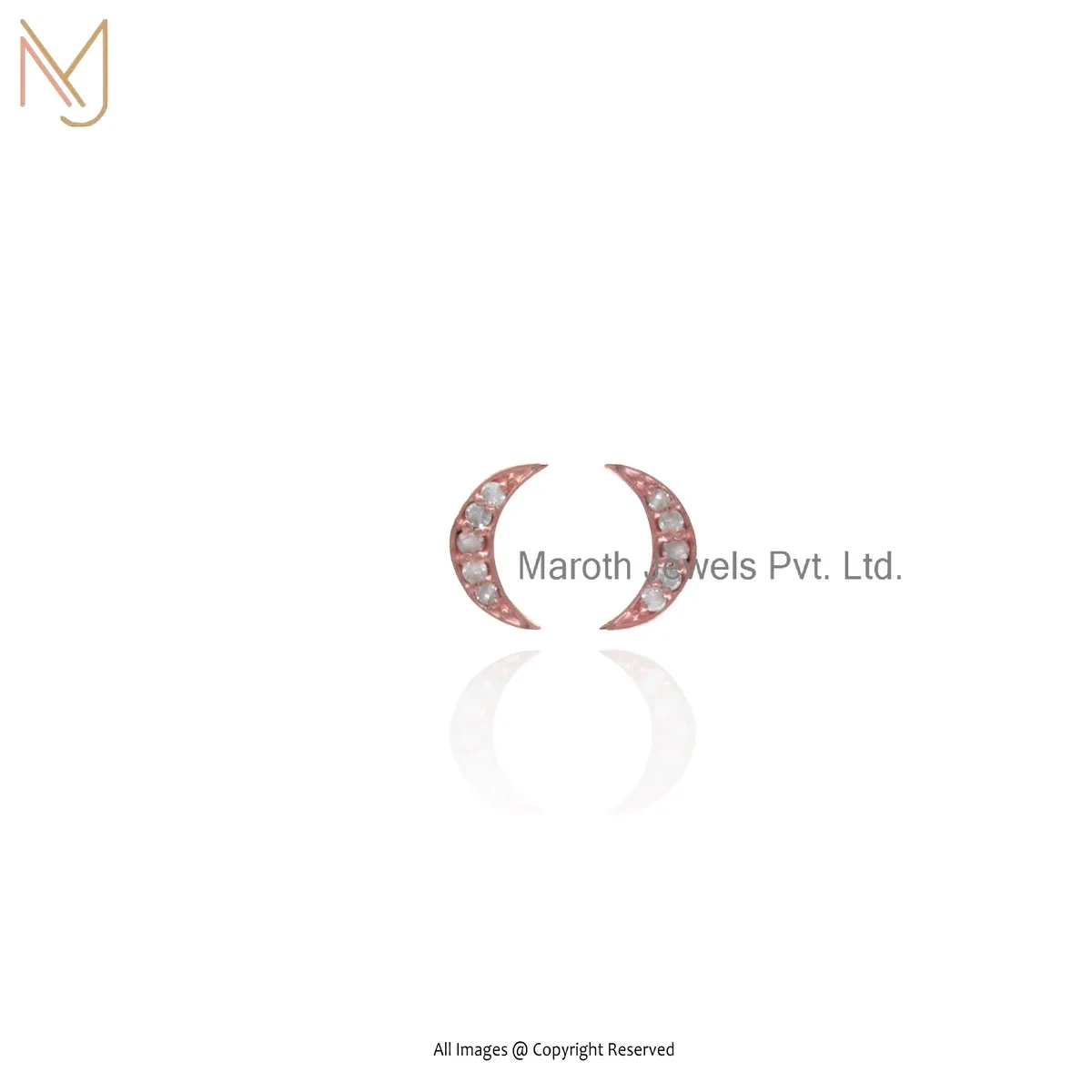 14K Yellow Gold Pave Diamond Crescent Moon Stud Earring Custom Jewelry
