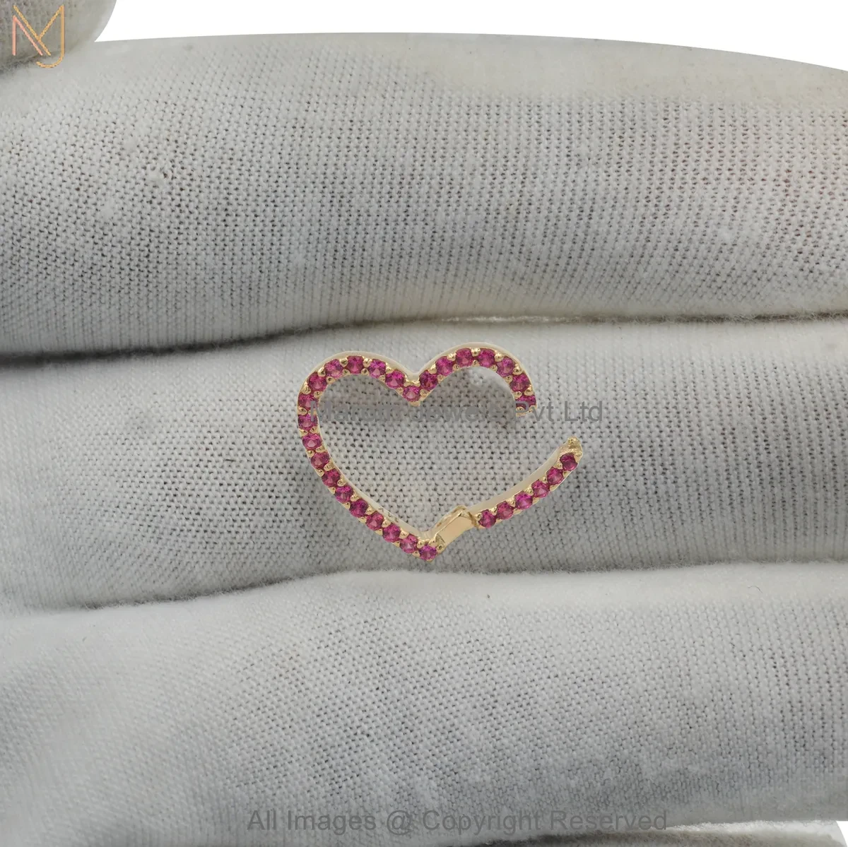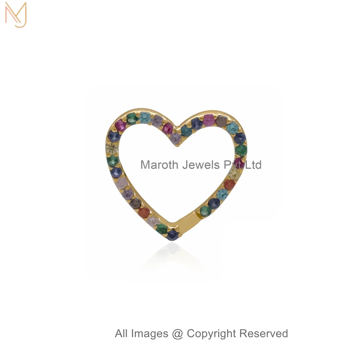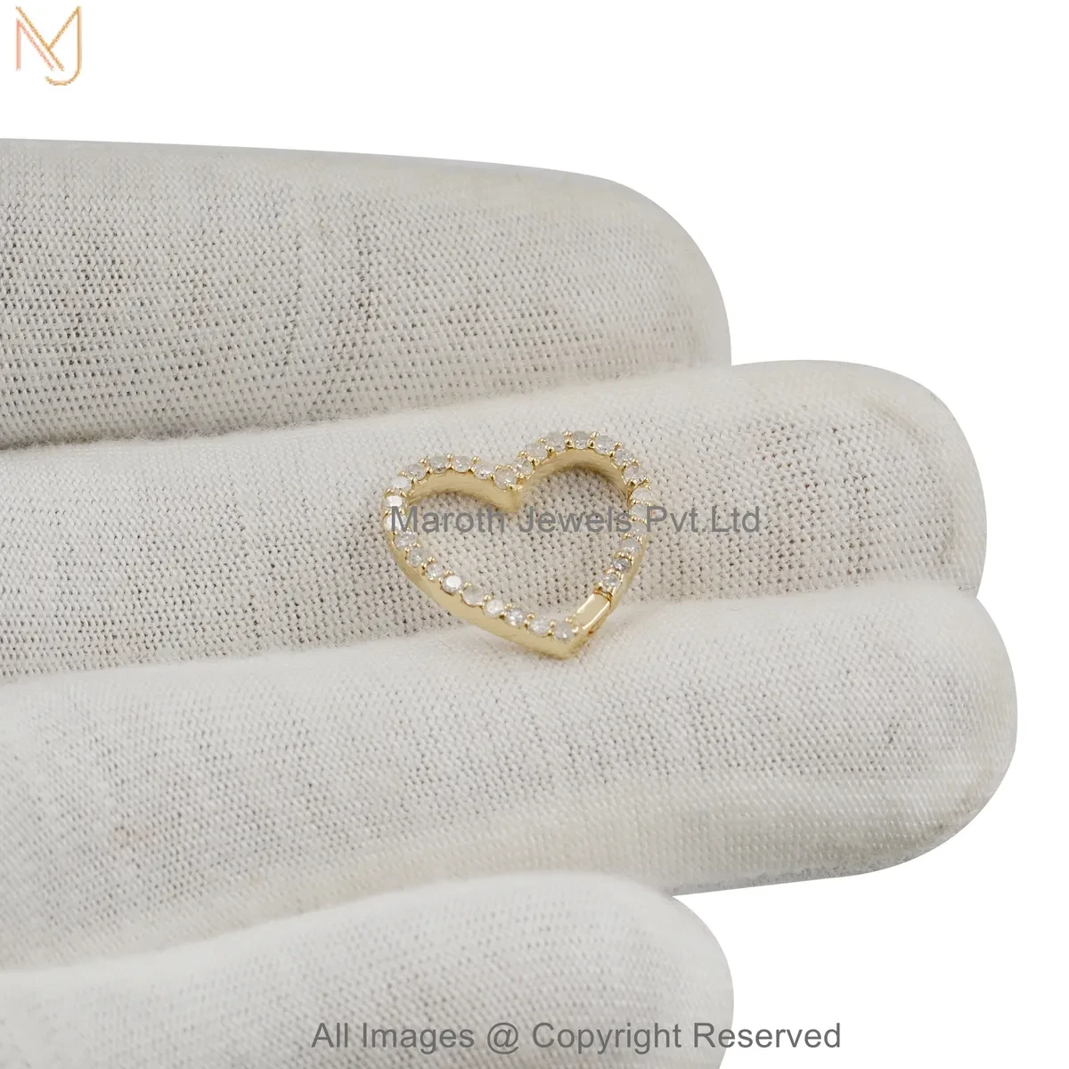14K Yellow Gold Pave Diamond Gemstone Heart Charm Holder Jewelry Manufacturer