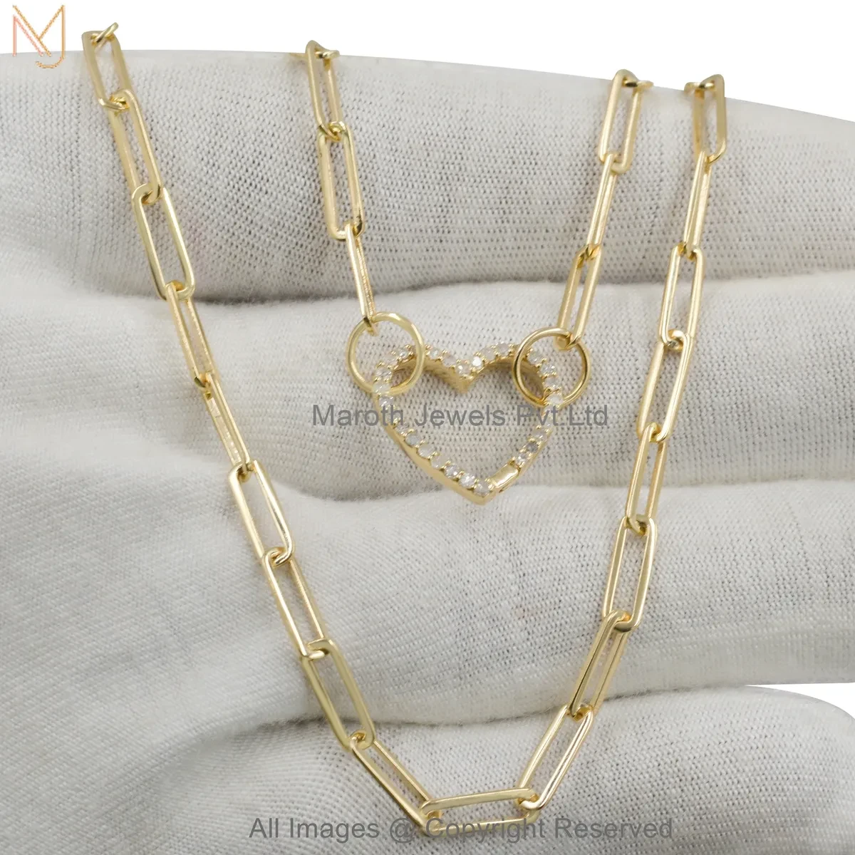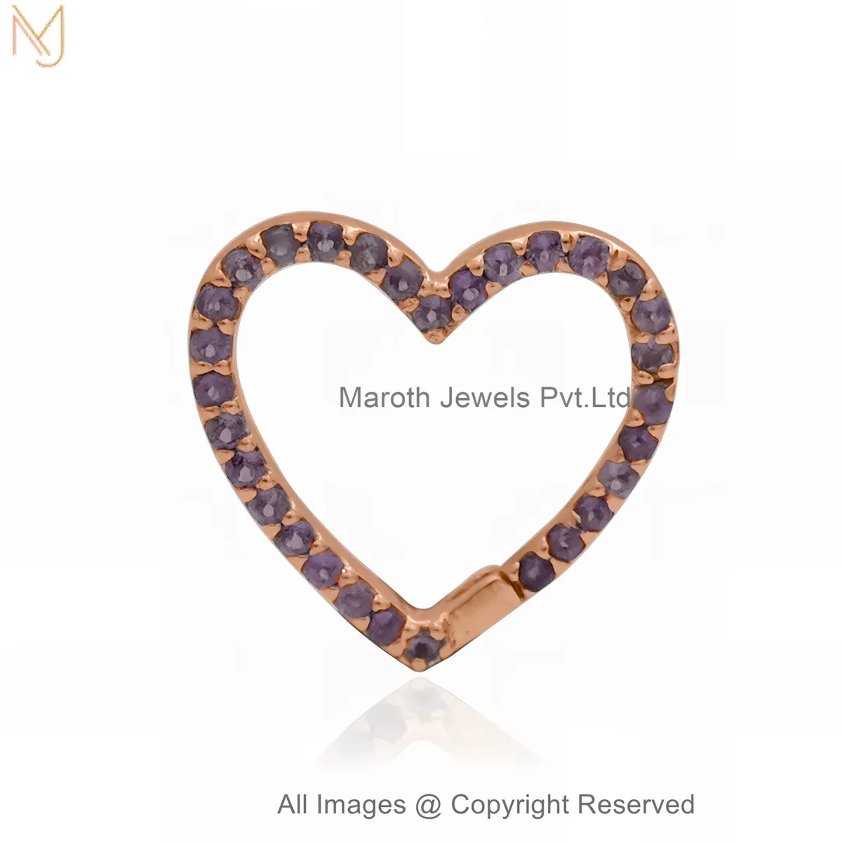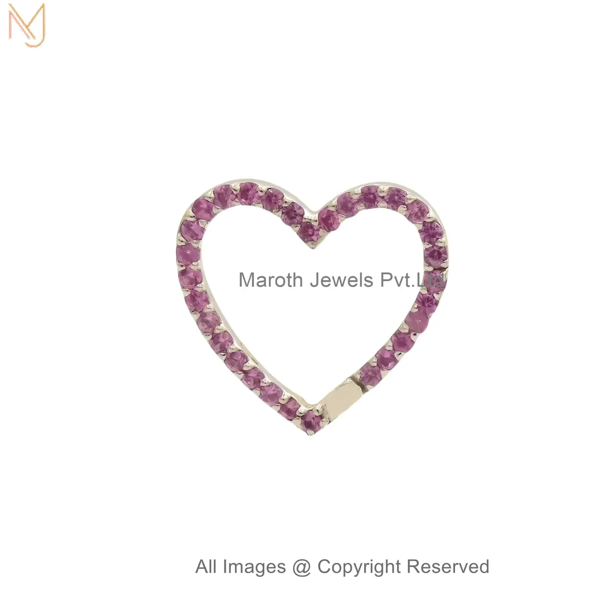 14K Yellow Gold Pave Diamond Gemstone Heart Charm Holder Jewelry Manufacturer