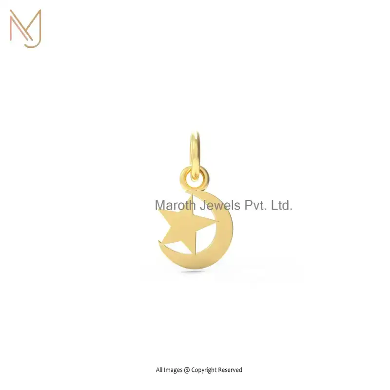 14K Yellow Gold Pave Diamond Half Moon Star Design Pendant Jewelry USA