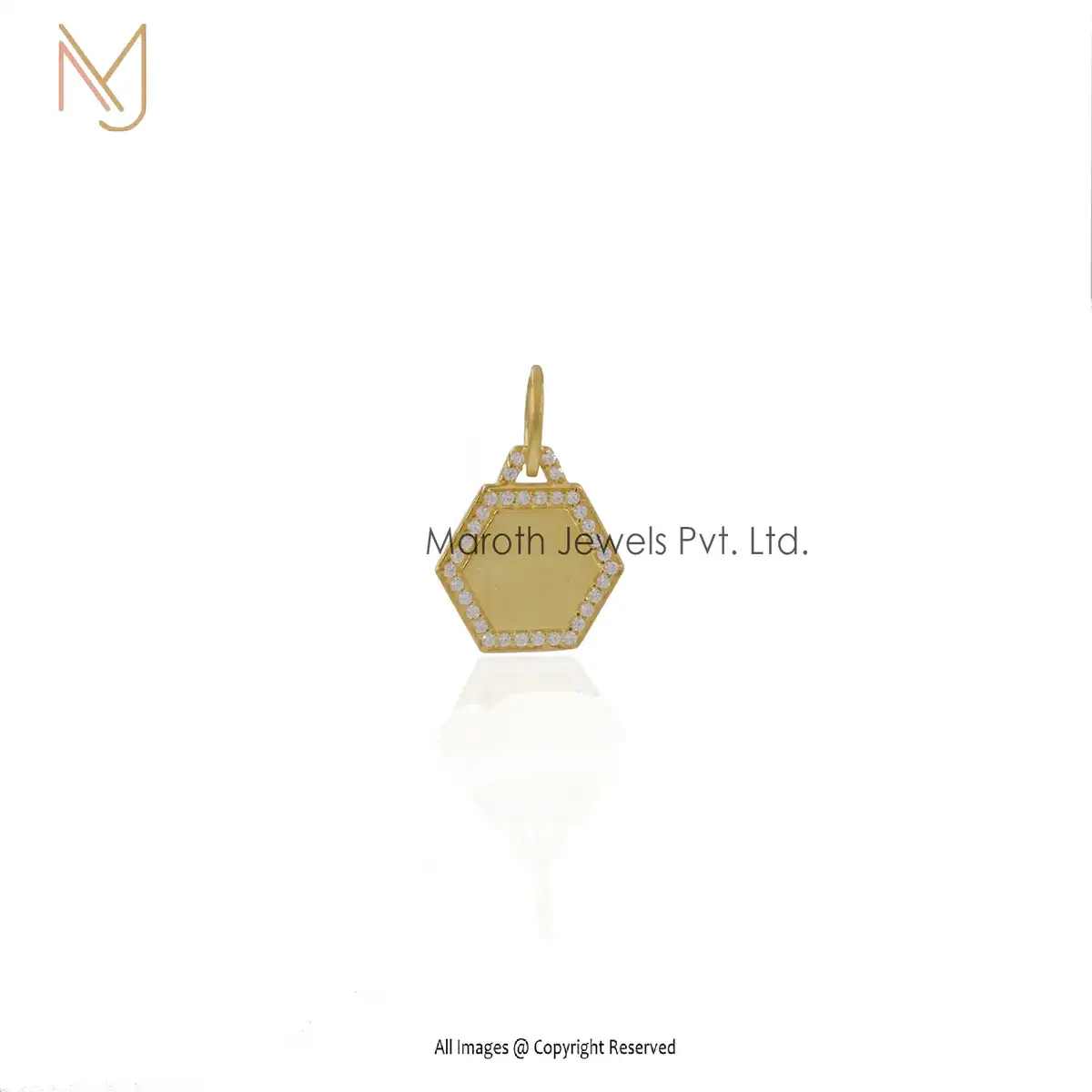 14K Yellow Gold Pave Diamond Hexagon Pendant Jewelry Supplier