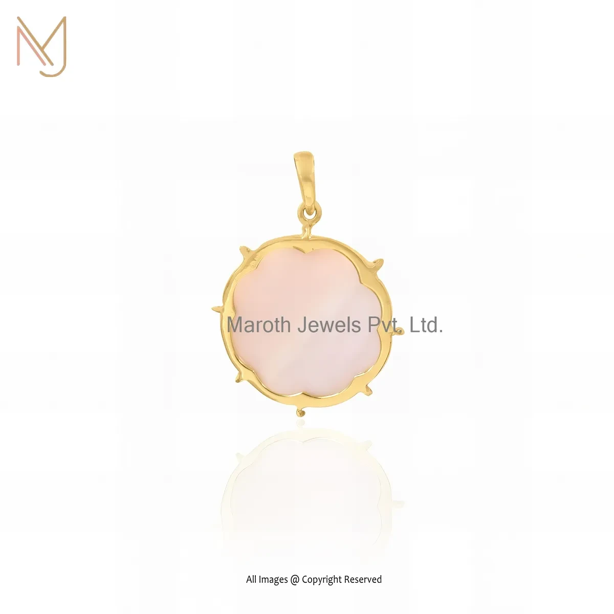 14K Yellow Gold Pink Opal And Emerald Gemstone Flower Pendant Manufacturer