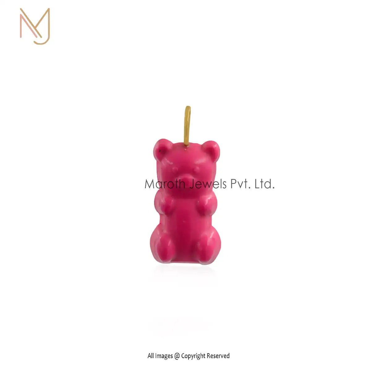 14K Yellow Gold Pink Opal Jelly Bear Pendant Jewelry Suppiler