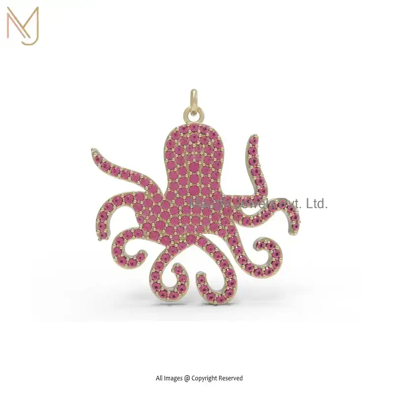 14K Yellow Gold & Pink Sapphire Pendant Jewelry Manufacturer